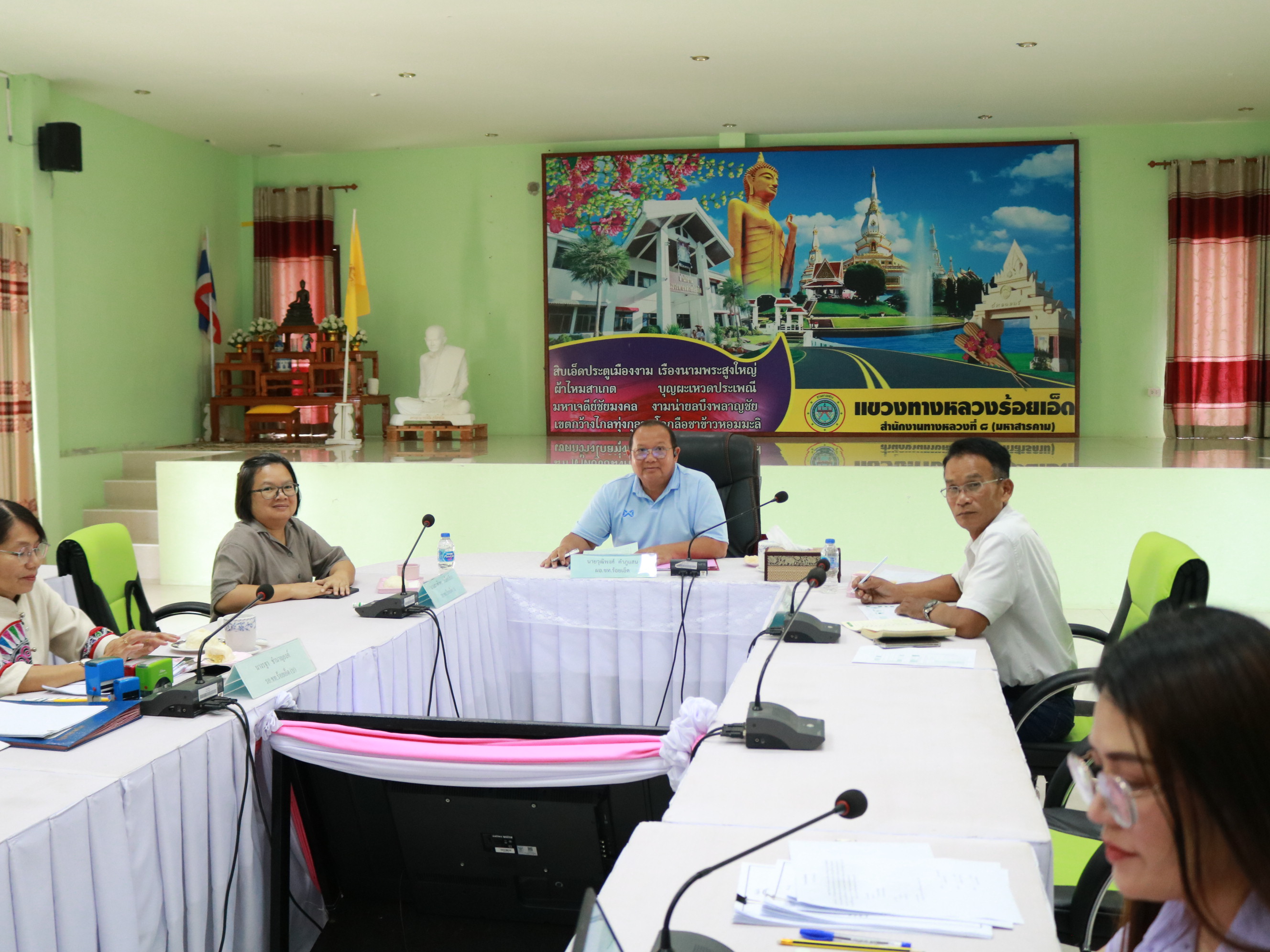 นายวุฒิพงศ์ คำภูแสน ผู้อำนวยการแขวงทางหลวงร้อยเอ็ด ,นายสถิต คำพิชิต รองผู้อำนวยแขวงทางหลวงร้อยเอ็ด ฝ่ายปฏิบัติการ ,นางสาวศิวพร เหมือนสีเลา รองผู้อำนวยการแขวงทางหลวงร้อยเอ็ด ฝ่ายวิศวกรรม ,นางรฐา ชำนาญยงค์ รองผู้อำนวยการแขวงทางหลวงร้อยเอ็ด ฝ่ายบริหาร พร้อมเจ้าหน้าที่แขวงทางหลวงร้อยเอ็ด ได้เข้าร่วมประชุมผู้บริหารกรมทางหลวง ประจำเดือนกันยายน 2568 ครั้งที่ 8/2568 โดยมี นายอภิรัฐ ไชยวงศ์น้อย อธิบดีกรมทางหลวง เป็นประธานในการประชุม ณ ห้องประชุมมนัส คอวนิช กรมทางหลวง ผ่านสื่ออิเล็กทรอนิกส์แอปพลิเคชั่น Zoom Cloud Meeting ณ ห้องประชุมจุลละโพธิ แขวงทางหลวงร้อยเอ็ด