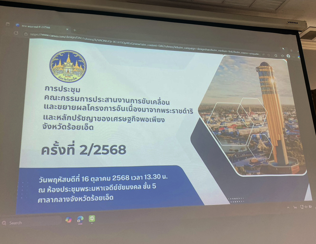 “เข้าร่วมประชุมคณะกรรมการประสานงานการขับเคลื่อนและขยายผลโครงการอันเนื่องมาจากพระราชดำริและหลักปรัชญาของเศรษฐกิจพอเพียง จังหวัดร้อยเอ็ด ครั้งที่ 2/2568"