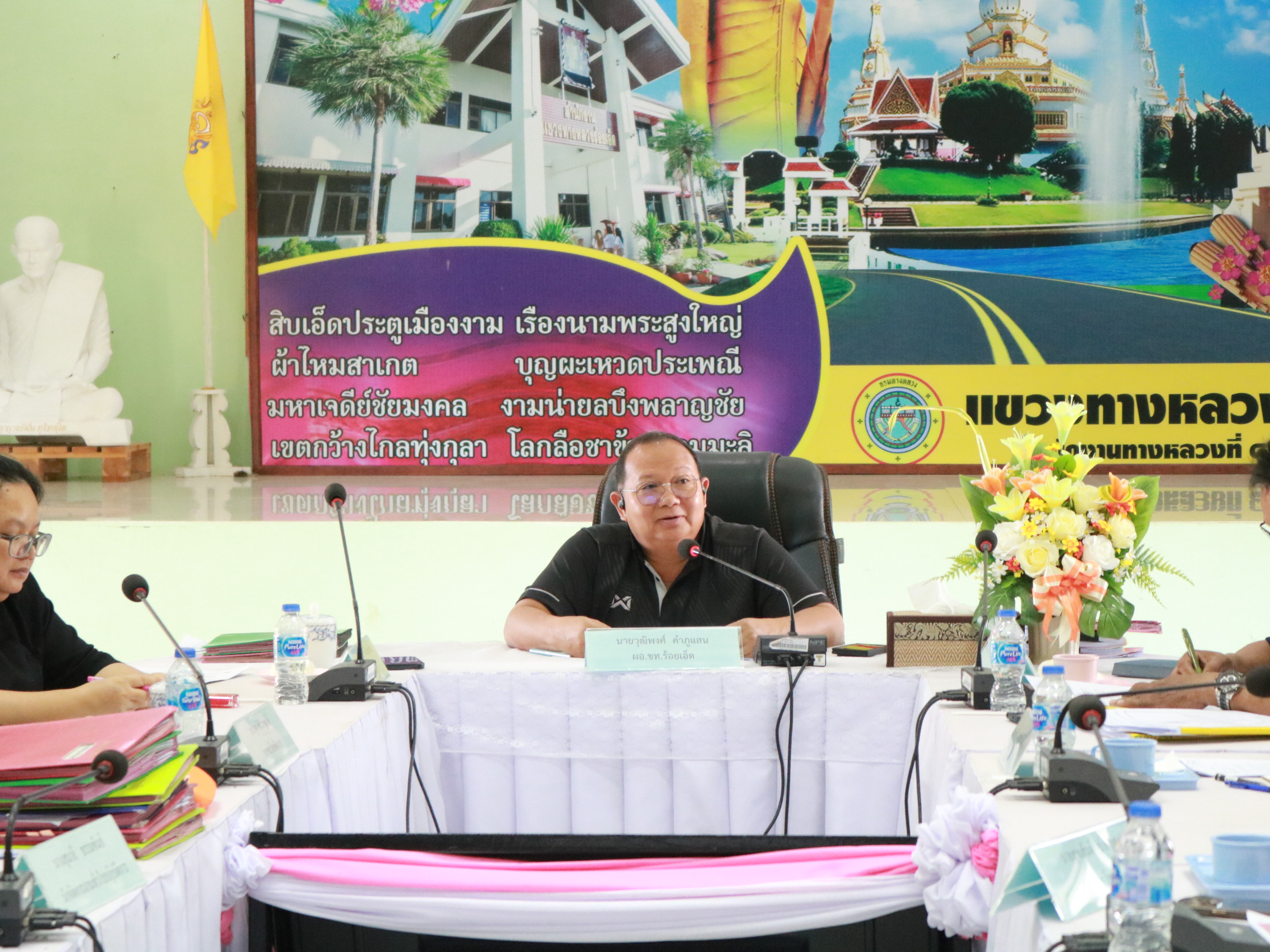 นายวุฒิพงศ์ คำภูแสน ผู้อำนวยการแขวงทางหลวงร้อยเอ็ด พร้อมด้วย นายสถิต คำพิชิต รองผู้อำนวยการแขวงทางหลวงร้อยเอ็ด ฝ่ายปฏิบัติการ ,นางสาวศิวพร เหมือนสีเลา รองผู้อำนวยการแขวงทางหลวงร้อยเอ็ด ฝ่ายวิศวกรรม ,นางรฐา ชำนาญยงค์ รองผู้อำนวยการแขวงทางหลวงร้อยเอ็ด ฝ่ายบริหาร และคณะเจ้าหน้าที่แขวงทางหลวงร้อยเอ็ด ได้ร่วมประชุมประจำเดือนพฤศจิกายน 2568 เพื่อสรุปผลการเบิกจ่ายเงินกัน งบประมาณปี 2568 ,ติดตามการจัดซื้อจัดจ้าง พรบ. 2569 และสรุปผลการดำเนินงาน ปัญหาและอุปสรรคในการดำเนินงาน ณ ห้องประชุมจุลละโพธิ แขวงทางหลวงร้อยเอ็ด