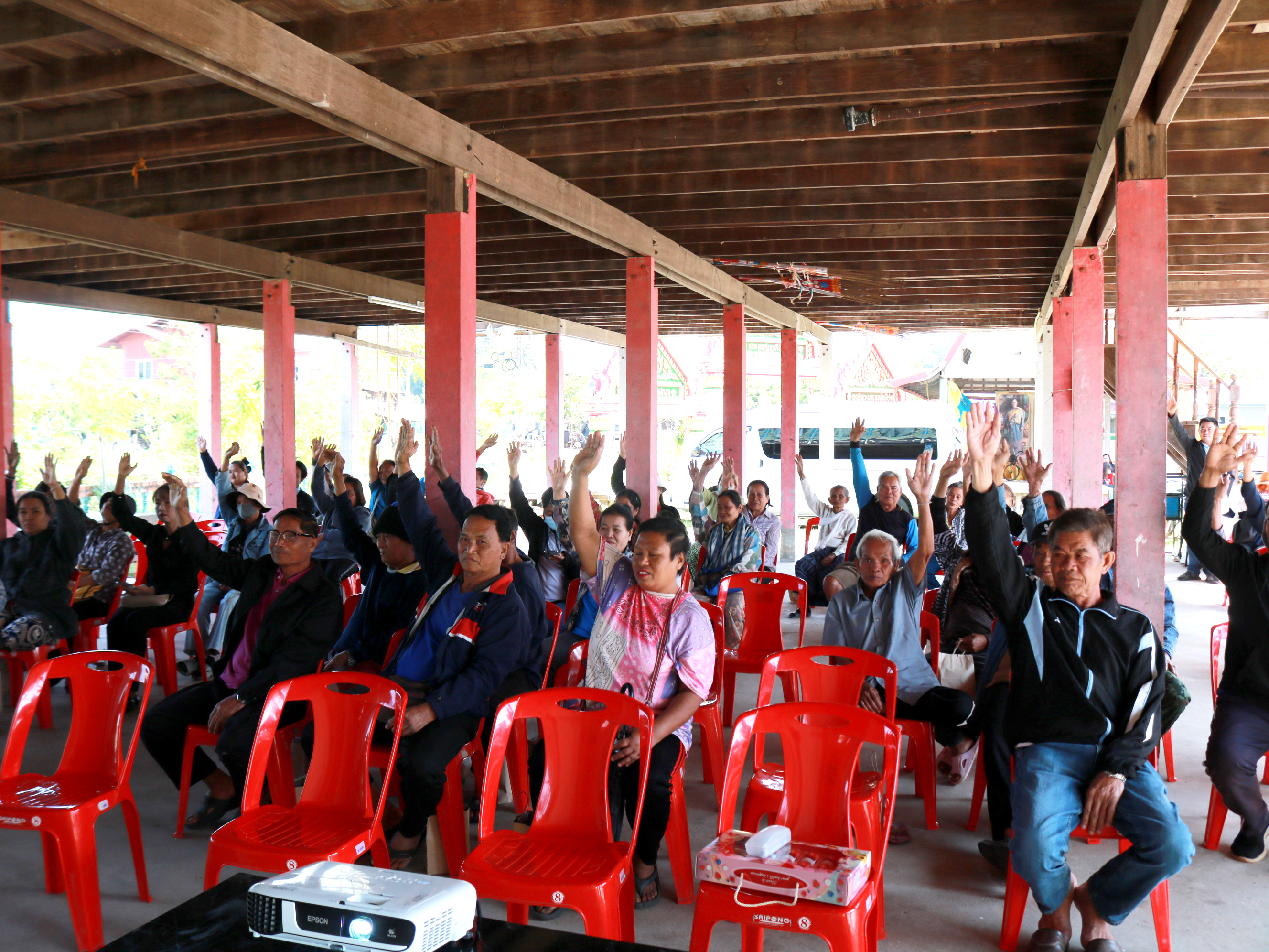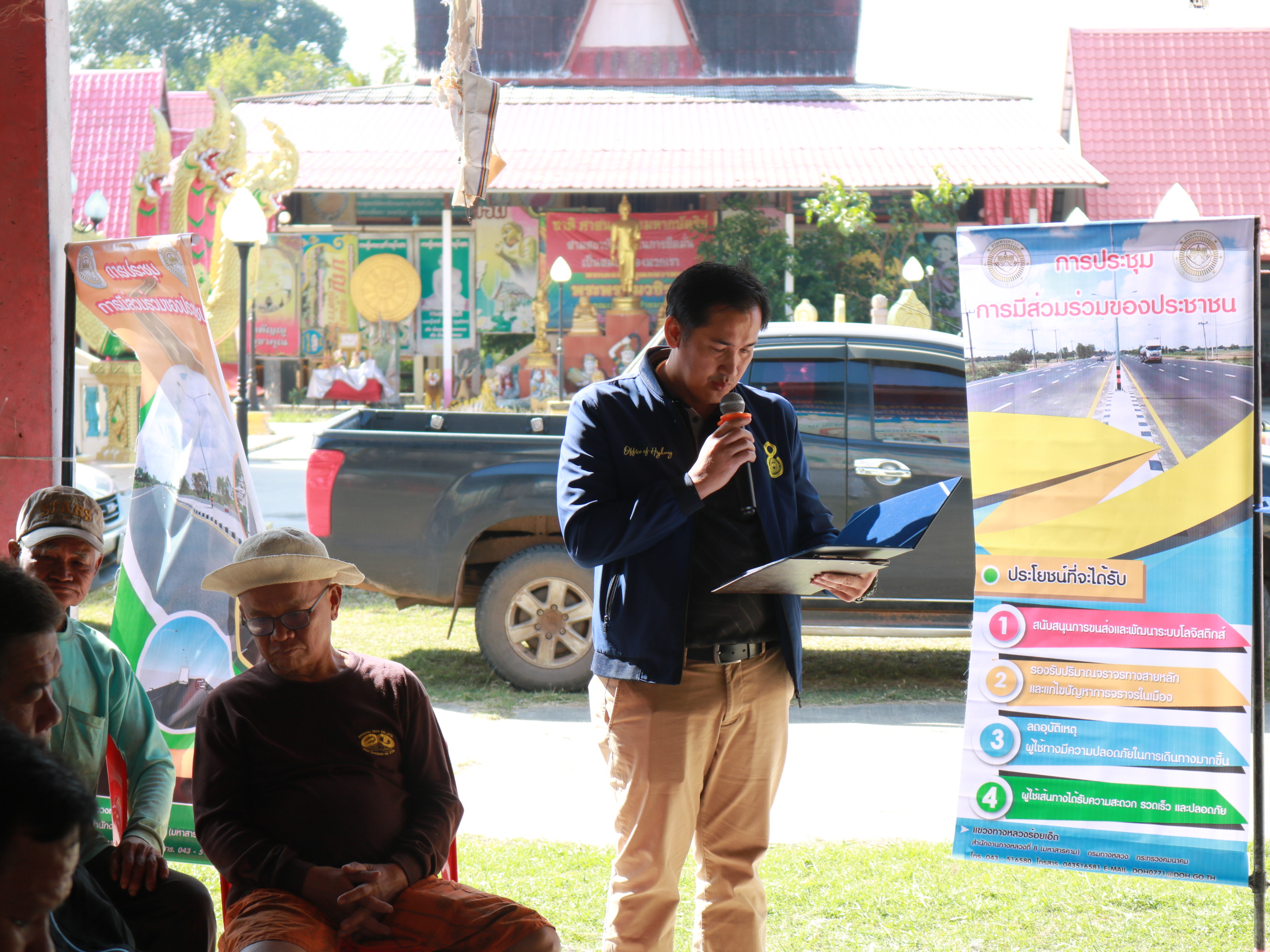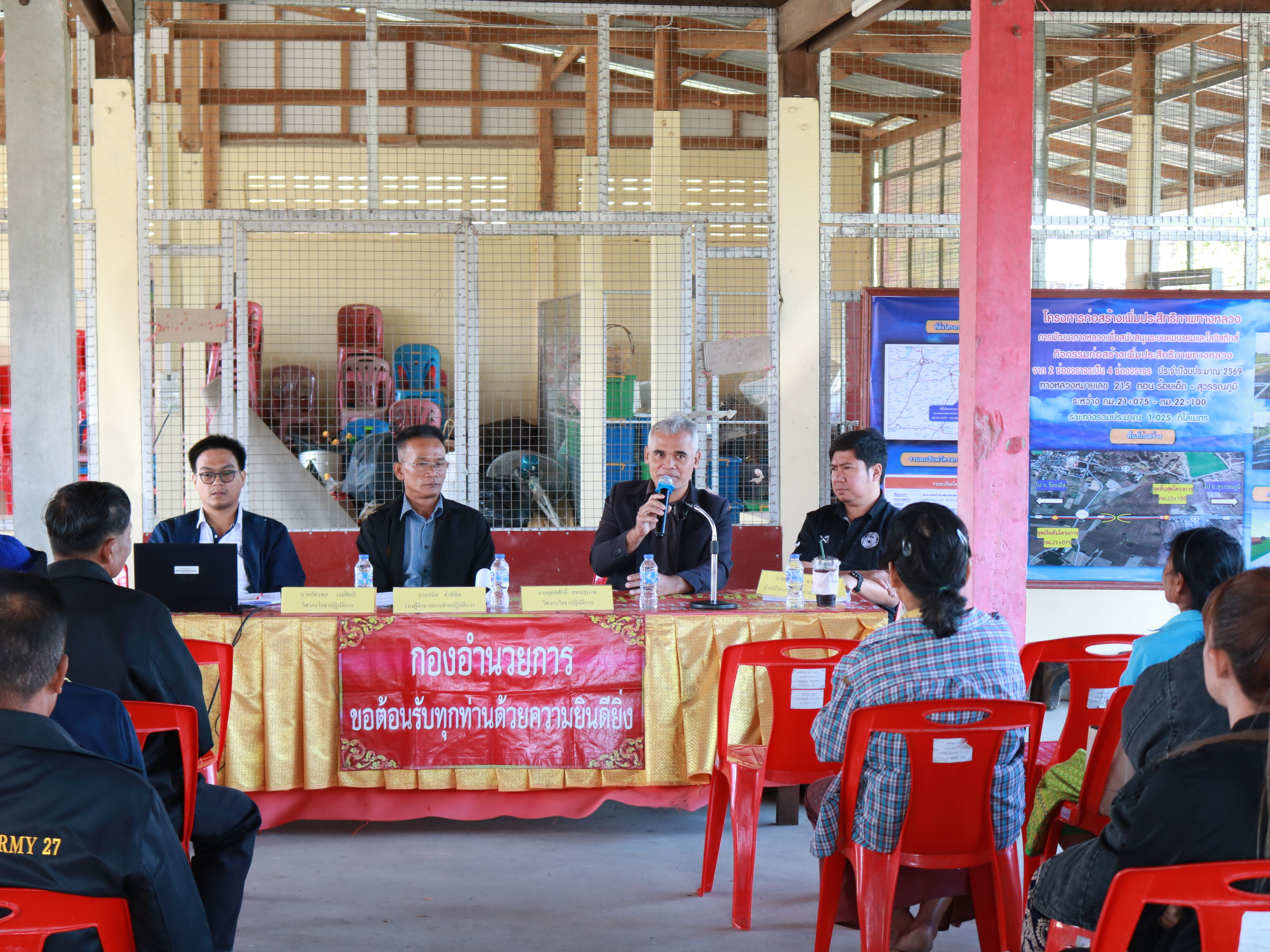 “ร่วมประชุมการมีส่วนร่วมของประชาชน เพื่อรับฟังความคิดเห็นของทุกภาคส่วน ในการดำเนินงานก่อสร้าง โครงการก่อสร้างโครงข่ายทางหลวงแผ่นดิน กิจกรรมก่อสร้างเพิ่มช่องจราจร ทางหลวงหมายเลข 215 ตอน ร้อยเอ็ด - สุวรรณภูมิ ระหว่าง กม.21+075 - กม.22+100”