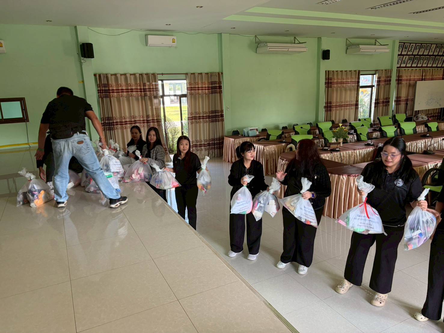 แขวงทางหลวงร้อยเอ็ด คณะผู้บริหาร ข้าราชการ พนักงาน และเจ้าหน้าที่ในสังกัด ร่วมกันบรรจุและจัดเตรียมถุงยังชีพเพื่อช่วยเหลือผู้ประสบภัย จากอุทกภัยในพื้นที่ภาคใต้ ณ ห้องประชุมจุลละโพธิ แขวงทางหลวงร้อยเอ็ด