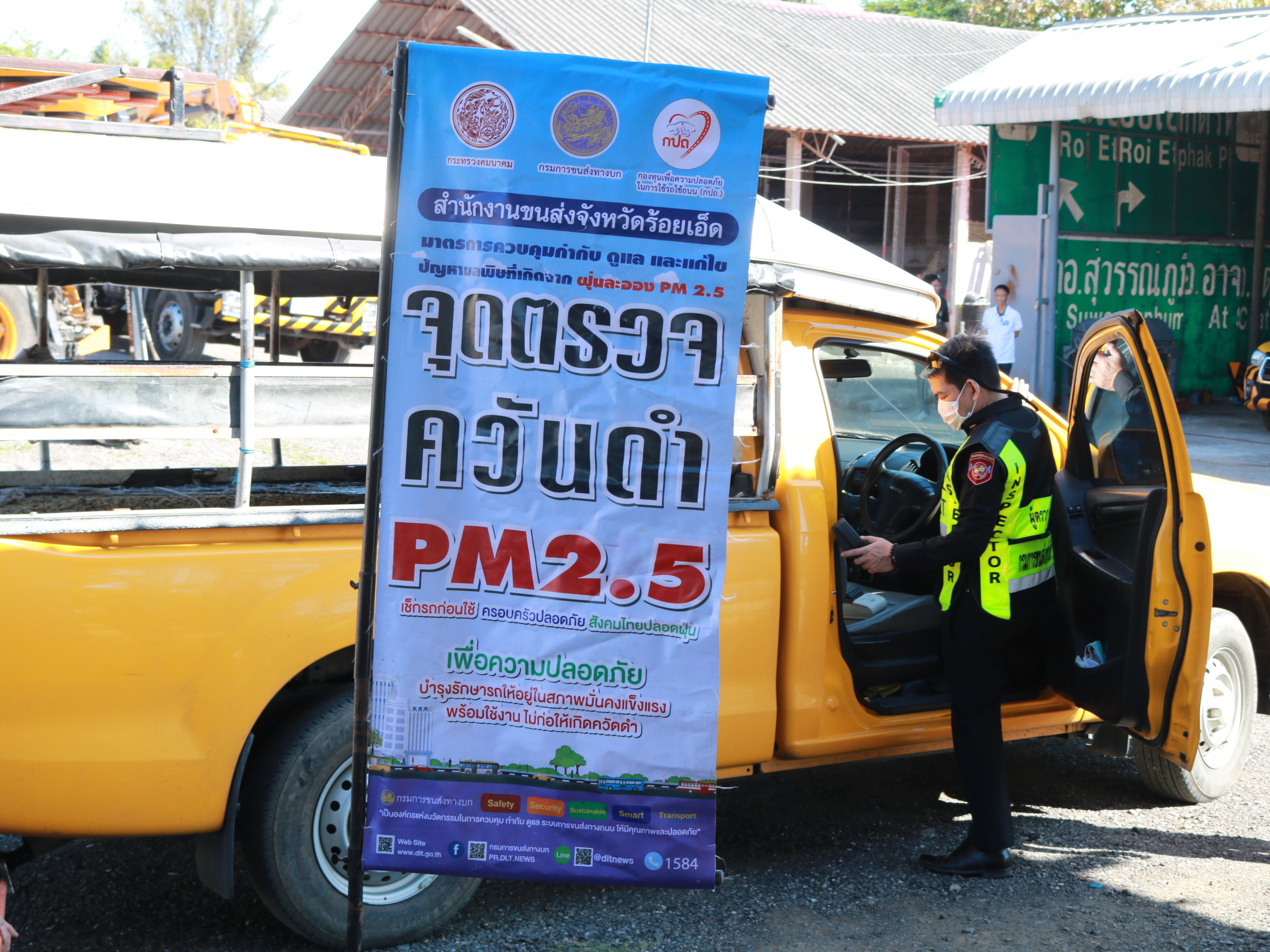 "ร่วมตรวจวัดควันดำของเครื่องจักรยานพาหนะของแขวงทางหลวงร้อยเอ็ด เพื่อป้องกันและแก้ไขปัญหาฝุ่นละอองขนาดเล็ก PM 2.5"