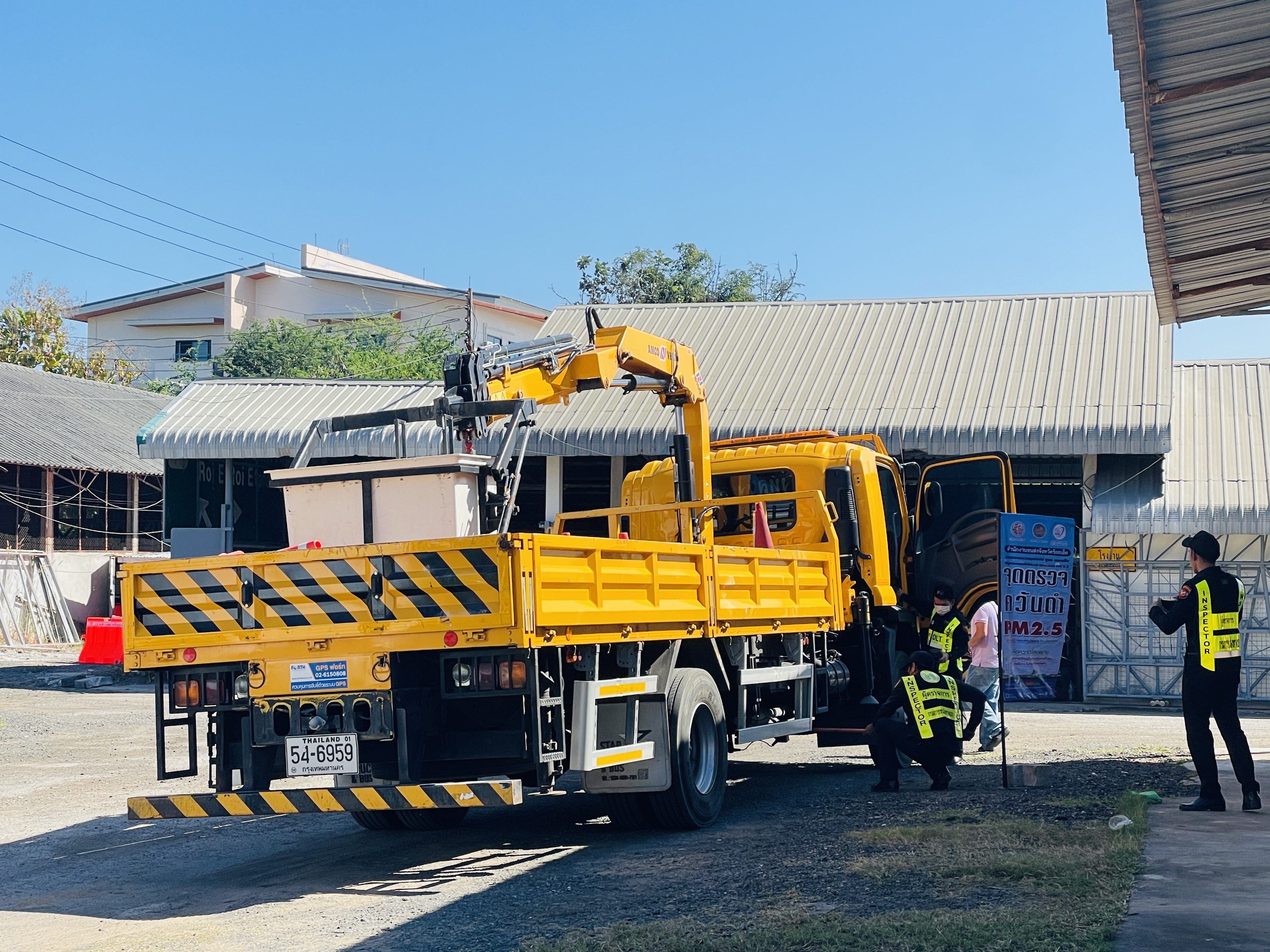 แขวงทางหลวงร้อยเอ็ด สำนักงานขนส่งจังหวัดร้อยเอ็ด ร่วมตรวจวัดควันดำของเครื่องจักรยานพาหนะของแขวงทางหลวงร้อยเอ็ด เพื่อป้องกันและแก้ไขปัญหาฝุ่นละอองขนาดเล็ก PM 2.5 ณ โรงจอดรถหน้าโรงงานปรับซ่อม แขวงทางหลวงร้อยเอ็ด