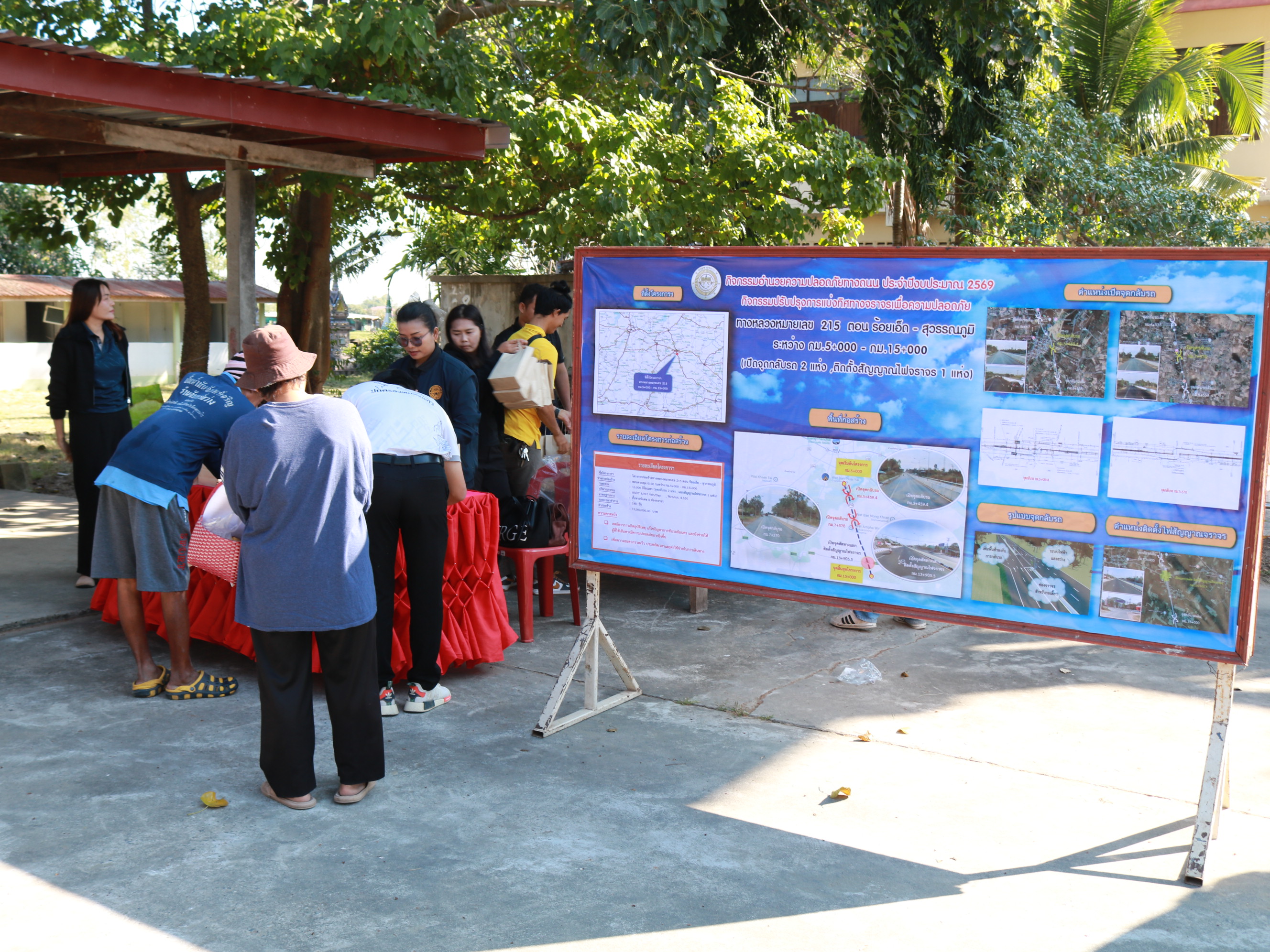“ร่วมประชุมการมีส่วนร่วมของประชาชน เพื่อรับฟังความคิดเห็นของทุกภาคส่วน ในการดำเนินงานก่อสร้าง โครงการก่อสร้างโครงข่ายทางหลวงแผ่นดิน กิจกรรมปรับปรุงการแบ่งทิศทางจราจรเพื่อความปลอดภัย ทล.215 ตอน ร้อยเอ็ด - สุวรรณภูมิ ระหว่าง กม.5+000 - กม.15+000”