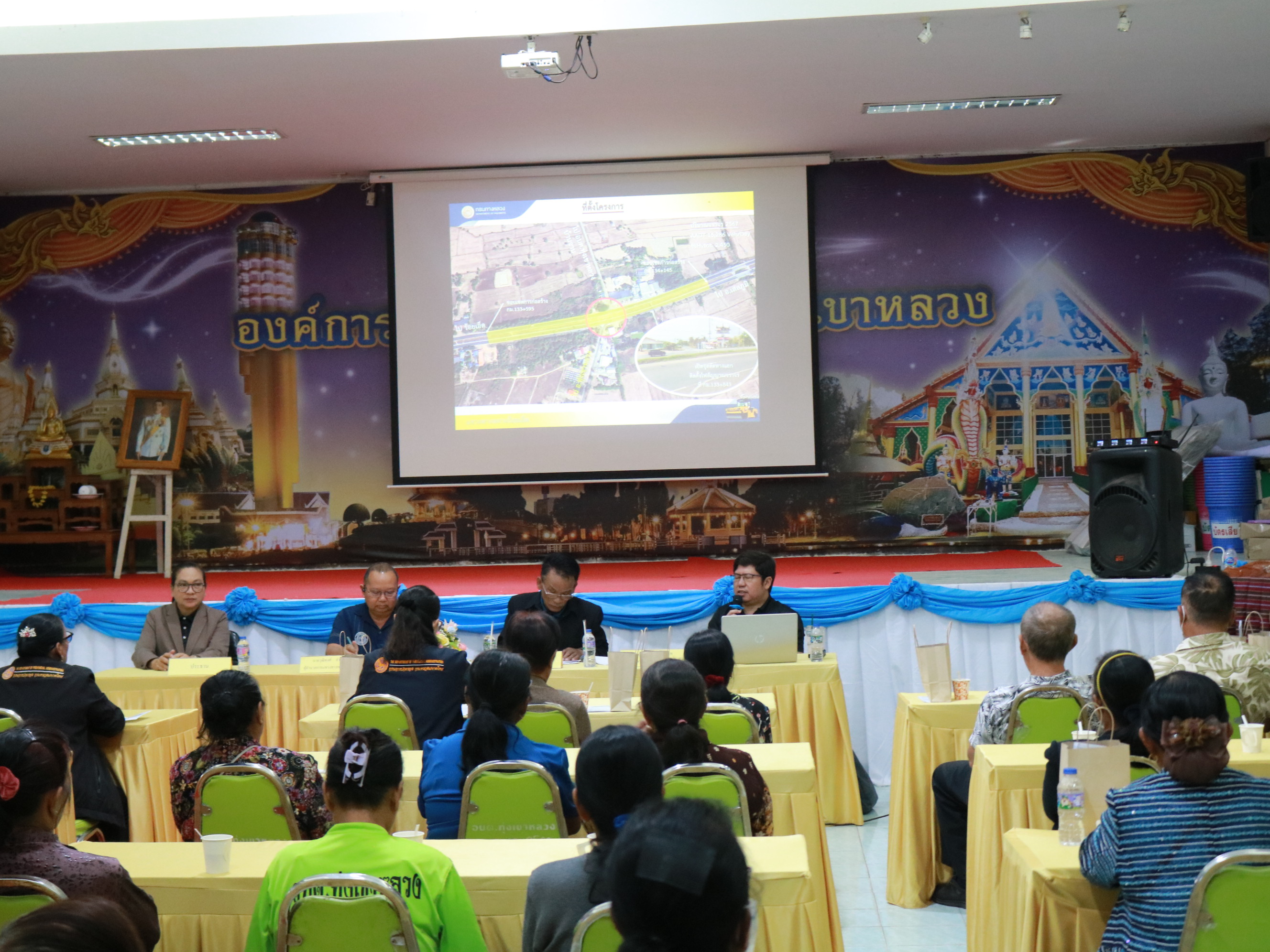 “ร่วมประชุมการมีส่วนร่วมของประชาชน เพื่อรับฟังความคิดเห็นของทุกภาคส่วน ในการดำเนินงานก่อสร้าง โครงการก่อสร้างโครงข่ายทางหลวงแผ่นดิน กิจกรรมปรับปรุงความปลอดภัยบริเวณทางแยกอันตรายโดยกายภาพ ในทางหลวงหมายเลข 23 ตอน ร้อยเอ็ด - เสลภูมิ ที่ กม.133+843”