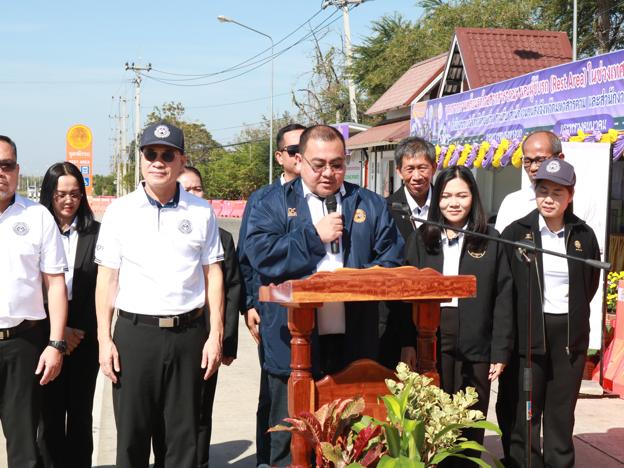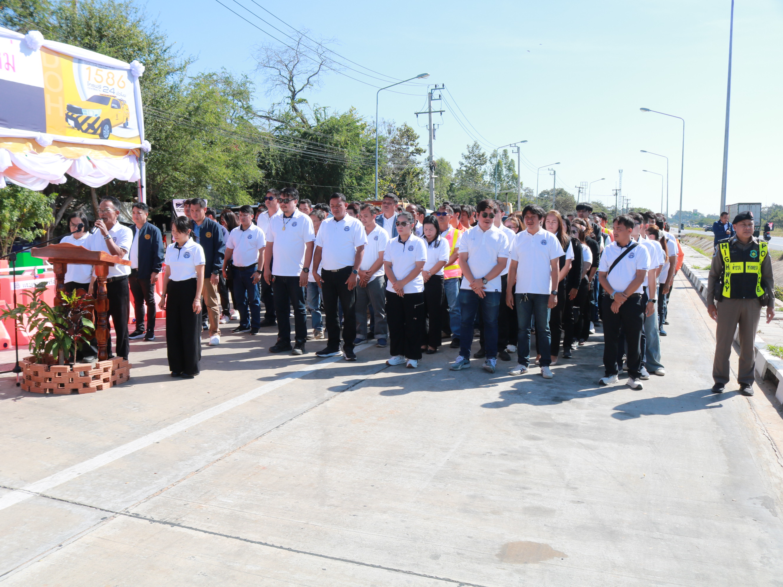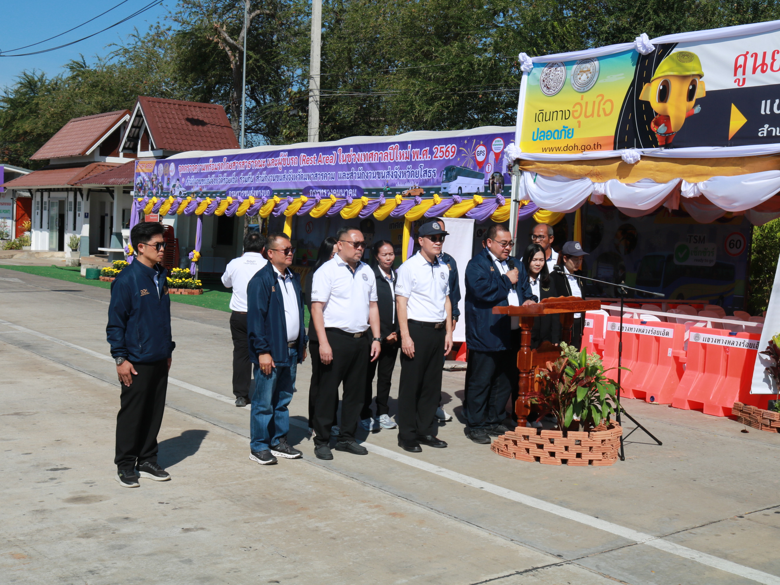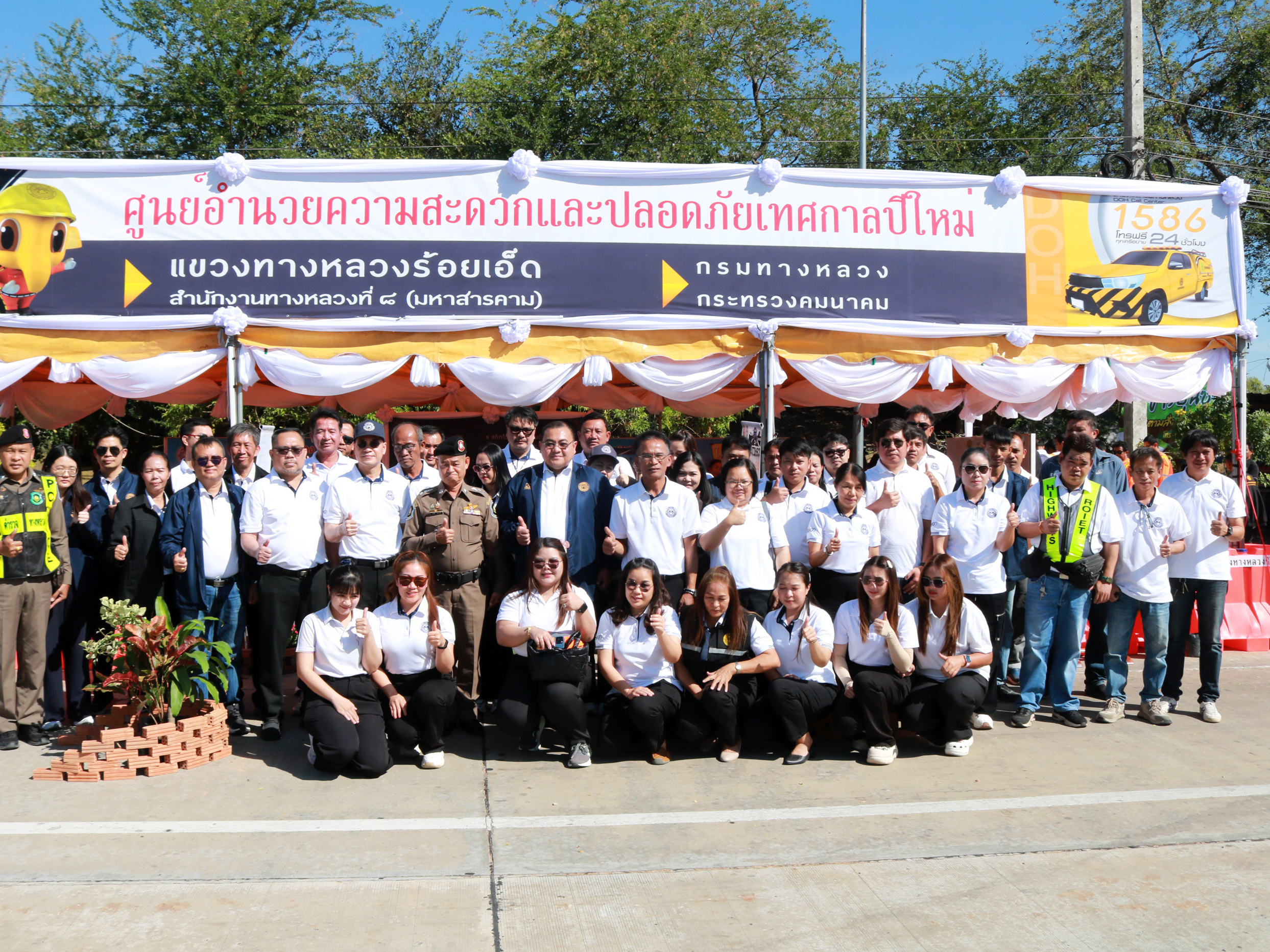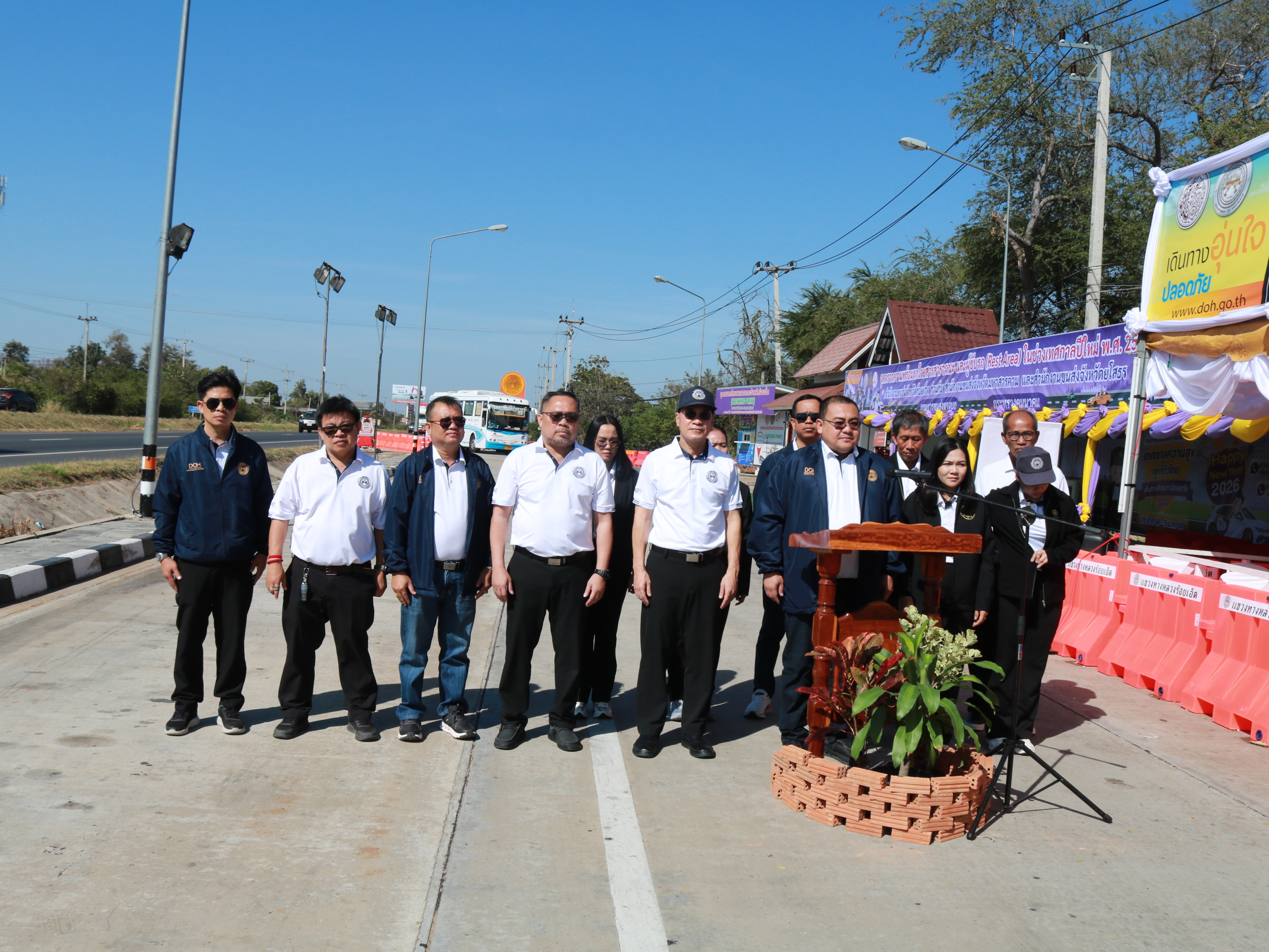 นายสถิต คำพิชิต รองผู้อำนวยแขวงทางหลวงร้อยเอ็ด ฝ่ายปฏิบัติการ ,นางสาวศิวพร เหมือนสีเลา รองผู้อำนวยการแขวงทางหลวงร้อยเอ็ด ฝ่ายวิศวกรรม ,นางรฐา ชำนาญยงค์ รองผู้อำนวยการแขวงทางหลวงร้อยเอ็ด ฝ่ายบริหาร ,เจ้าหน้าที่ตำรวจทางหลวง 1 กองกำกับการ 4 และคณะเจ้าหน้าที่แขวงทางหลวงร้อยเอ็ด เข้าร่วมพิธีเปิดศูนย์อำนวยความสะดวกและปลอดภัย และจุดให้บริการทั่วไทยในช่วงเทศกาลปีใหม่ 2569 (ระหว่างวันที่ 26 ธันวาคม 2568 - วันที่ 5 มกราคม 2569) โดยมี นายราชศักดิ์ สุทธินวล ผู้อำนวยการสำนักงานทางหลวงที่ 8 เป็นประธานในพิธีเปิดศูนย์ฯ พร้อมคณะฯ ณ บริเวณจุดพักรถบ้านดงยาง ในทางหลวงหมายเลข 23 ตอน ห้วยแอ่ง - ร้อยเอ็ด ที่ กม.103+750 ด้านซ้ายทาง