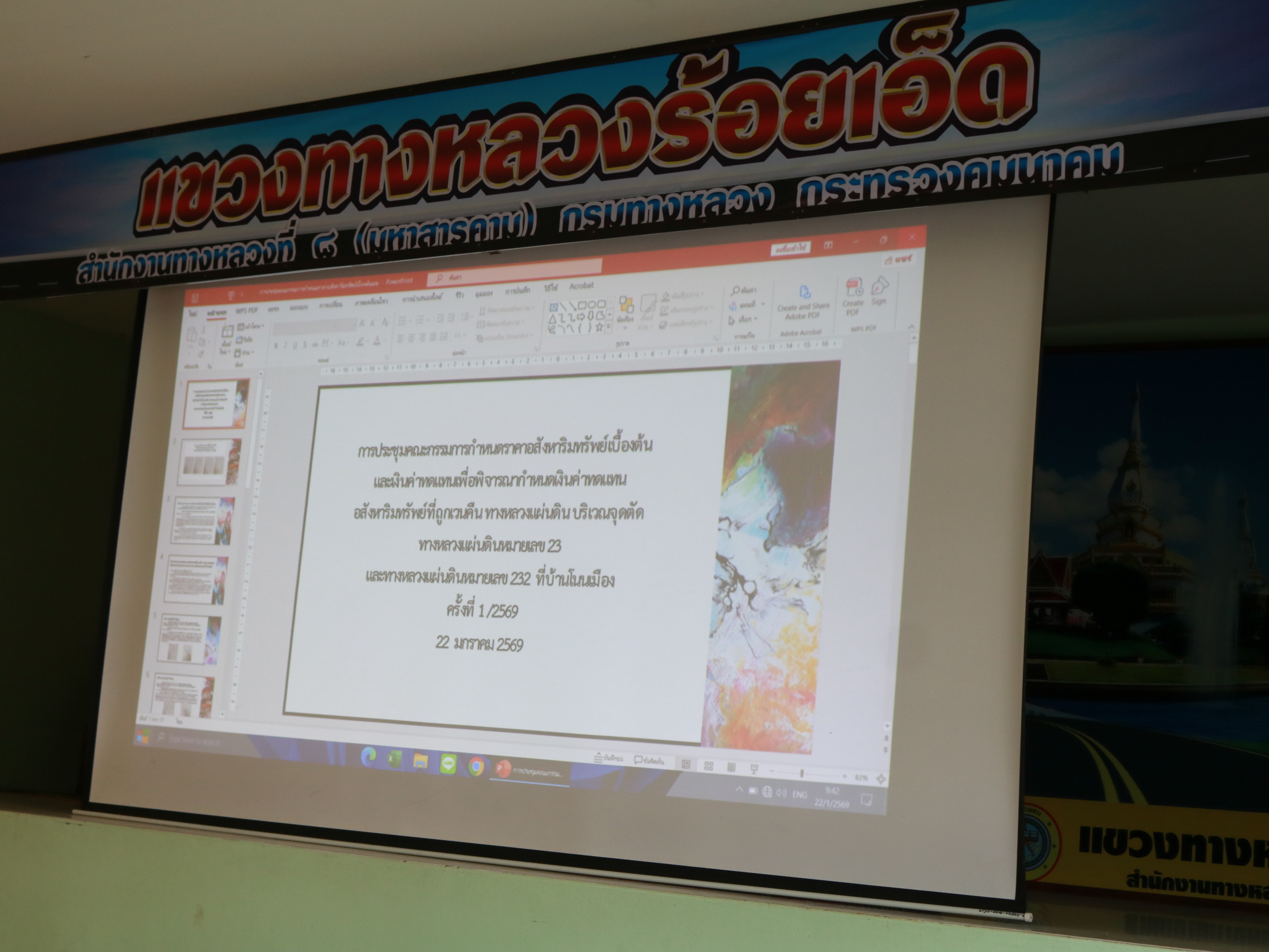 “ร่วมประชุมคณะกรรมการกำหนดราคาอสังหาริมทรัพย์เบื้องต้นและเงินค่าทดแทนเพื่อพิจารณากำหนดเงินค่าทดแทนอสังหาริมทรัพย์ที่ถูกเวนคืน ทางหลวงแผ่นดิน บริเวณจุดตัดทางหลวงหมายเลข 23 ตอน ห้วยแอ่ง – ร้อยเอ็ด ที่กม.106+924 ตัดกับทางหลวงหมายเลข 232 ตอน ถนนวงแหวนรอบเมืองร้อยเอ็ด ที่กม.0+000 (แยกบ้านโนนเมือง) ครั้งที่ 1/2569”