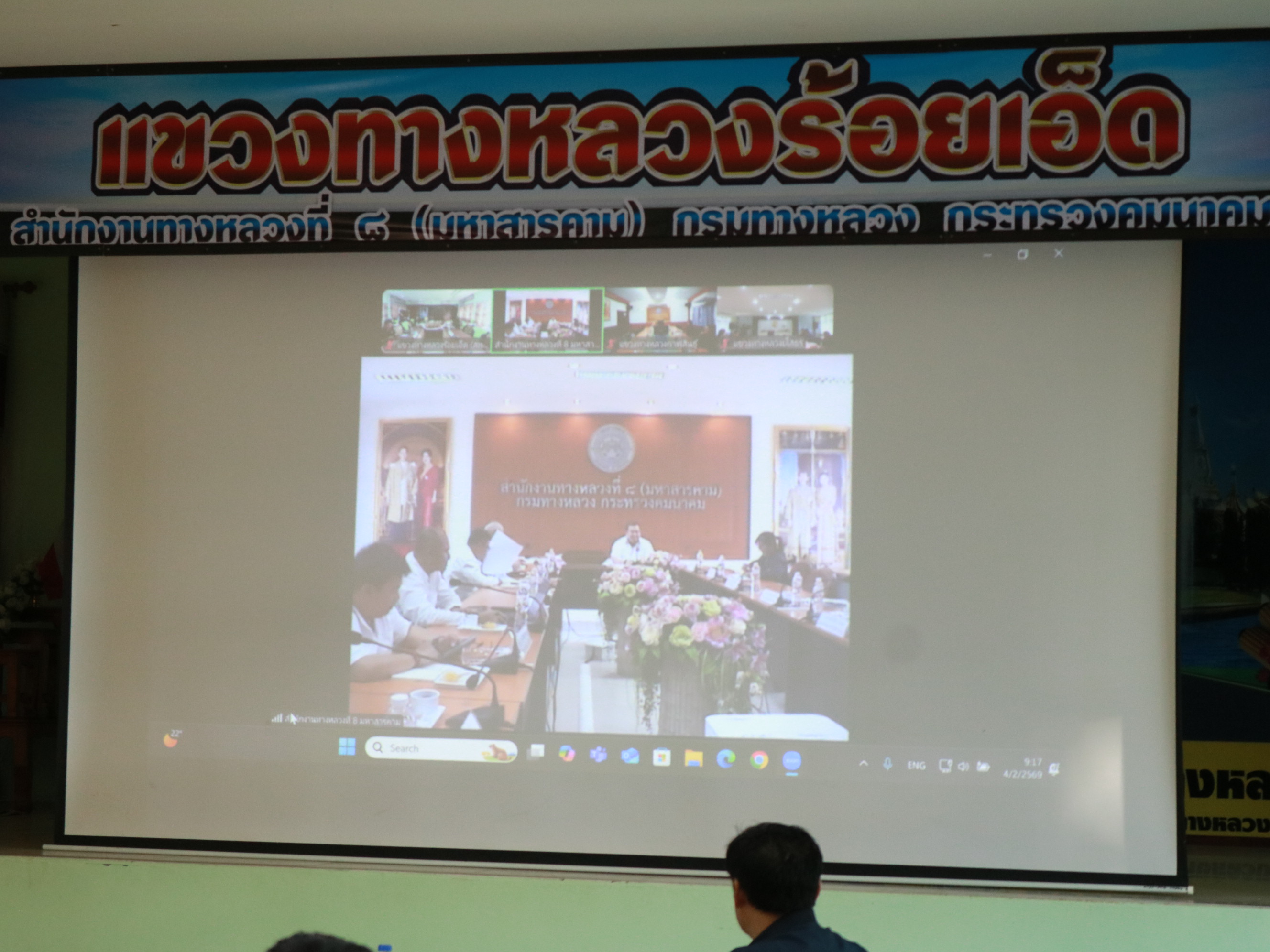 นายสถิต คำพิชิต รองผู้อำนวยแขวงทางหลวงร้อยเอ็ด ฝ่ายปฏิบัติการ ,นางสาวศิวพร เหมือนสีเลา รองผู้อำนวยการแขวงทางหลวงร้อยเอ็ด ฝ่ายวิศวกรรม ,นางรฐา ชำนาญยงค์ รองผู้อำนวยการแขวงทางหลวงร้อยเอ็ด ฝ่ายบริหาร และเจ้าหน้าที่แขวงทางหลวงร้อยเอ็ด ได้เข้าร่วมประชุมประจำเดือน กุมภาพันธ์ 2569 สำนักงานทางหลวงที่ 8 เพื่อติดตามผลดำเนินงานและผลเบิกจ่ายงบประมาณ ปี 2568 และ ปี 2569 ,การเตรียมความพร้อมเสนองบประมาณปี 2570 ปัญหาและอุปสรรคต่างๆ โดยมี นายราชศักดิ์ สุทธินวล ผู้อำนวยการสำนักงานทางหลวงที่ 8 เป็นประธานในการประชุม ผ่านระบบ Zoom Cloud Meeting ณ ห้องประชุมจุลละโพธิ แขวงทางหลวงร้อยเอ็ด
