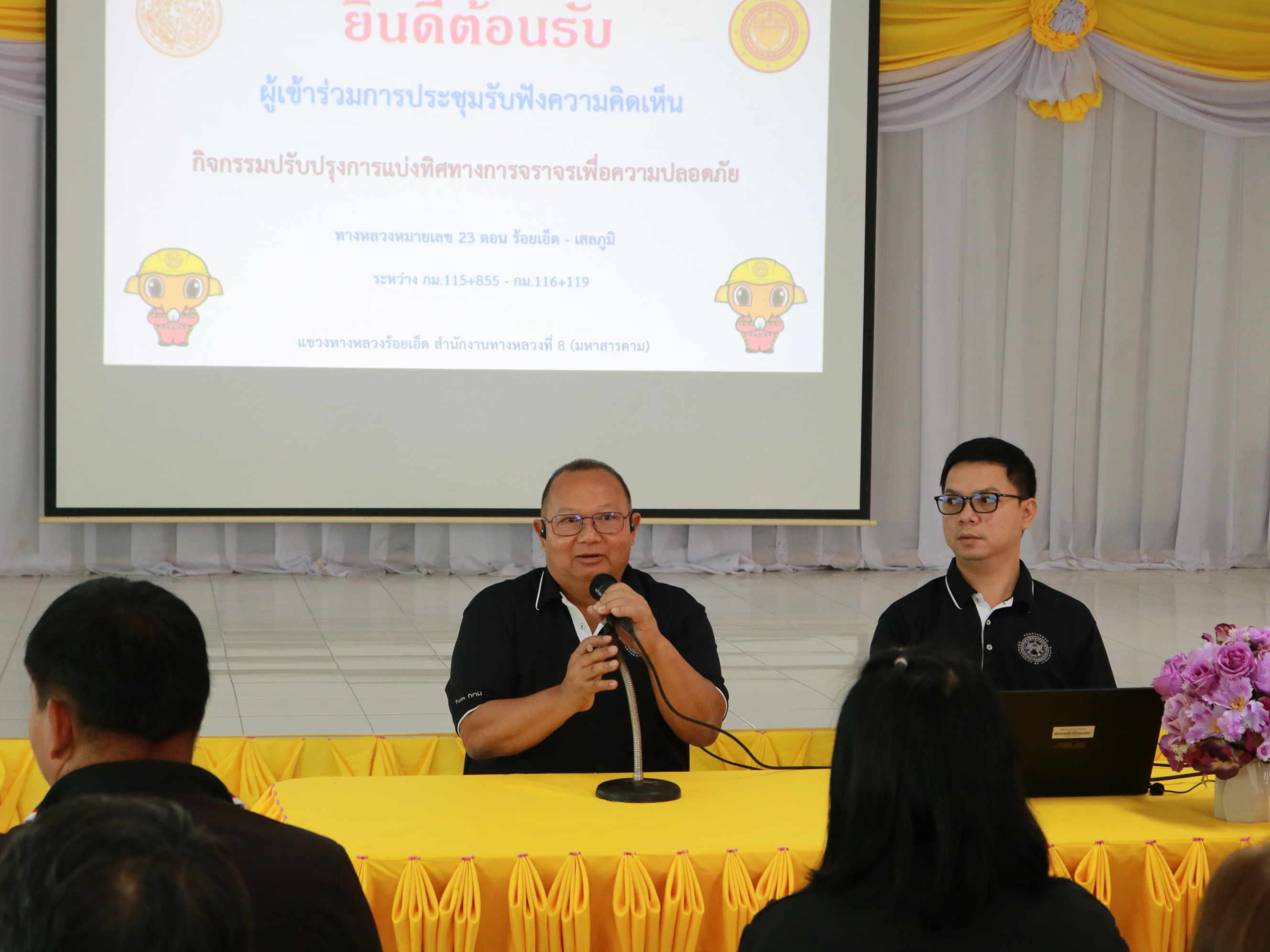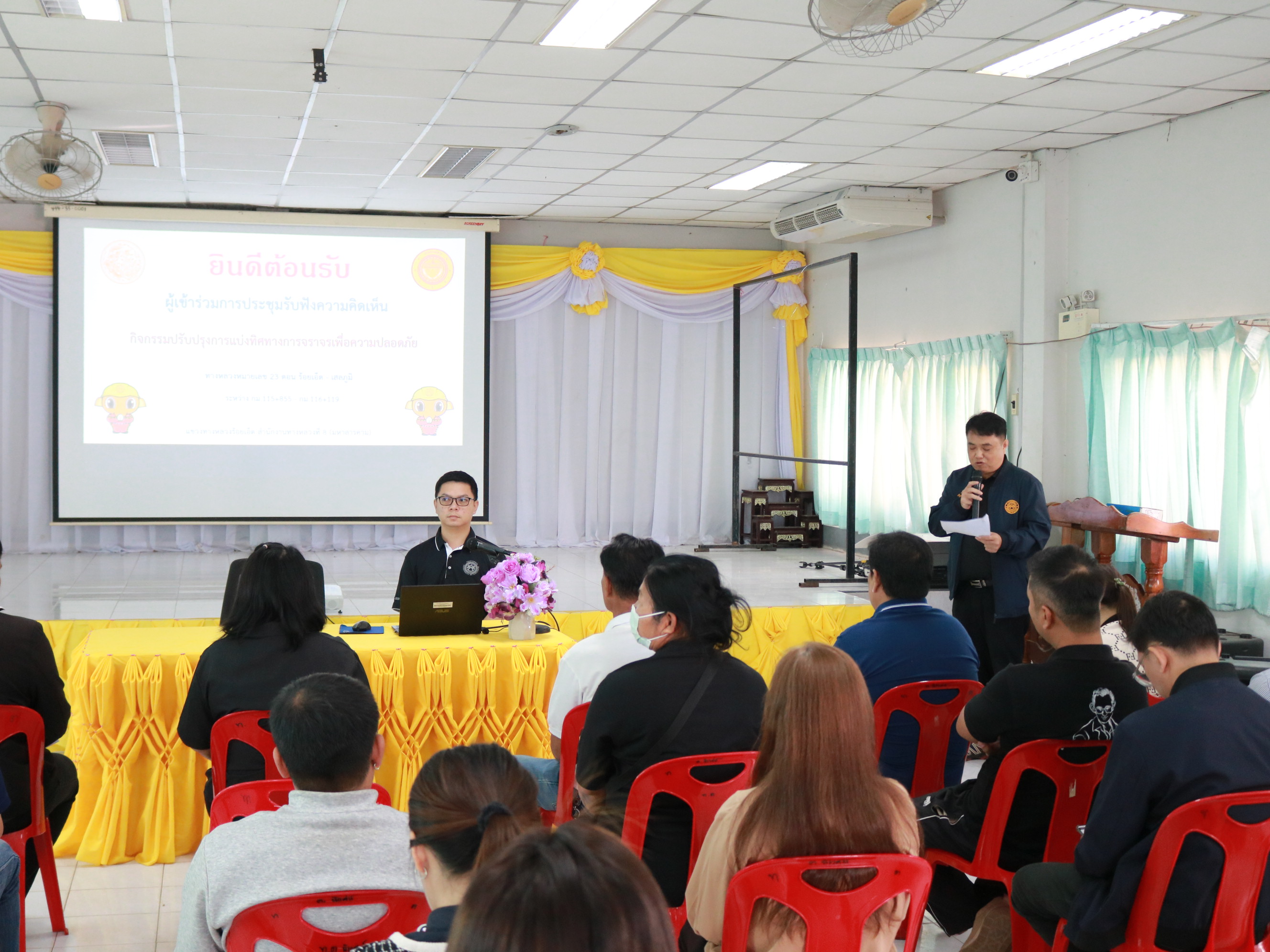 “ร่วมประชุมการมีส่วนร่วมของประชาชน เพื่อรับฟังความคิดเห็นของทุกภาคส่วน ในการดำเนินงานก่อสร้าง กิจกรรมปรับปรุงการแบ่งทิศทางจราจรเพื่อความปลอดภัย ในทางหลวงหมายเลข 23 ตอน ร้อยเอ็ด - เสลภูมิ ระหว่าง กม.115+855 - กม.116+119”