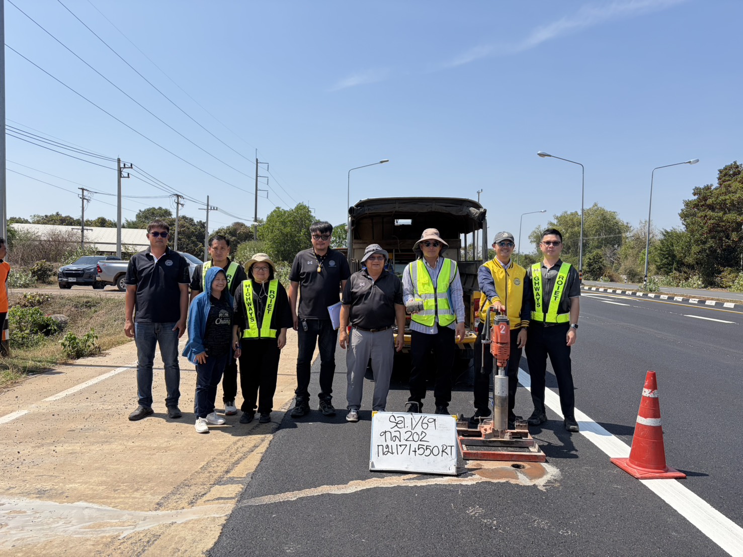 ร่วมตรวจรับงานก่อสร้าง ตามสัญญา ที่ รอ.1/2569 ลงวันที่ 17 ธันวาคม 2568 งานจ้างก่อสร้างกิจกรรมบำรุงรักษาทางหลวง ปี 2569 งานบูรณะผิวทางแอสฟัลต์คอนกรีต นำกลับมาใช้ใหม่ (IN PLACE) ในทางหลวงหมายเลข 202 ตอน ห้วยลำเตา – เกษตรวิสัย ระหว่าง กม.167+660 - กม.168+140 RT. และกม.169+250 – กม.171+720 RT. โดยมี บริษัท ยิ่งเจริญก่อสร้างบุรีรัมย์ จำกัด เป็นผู้รับจ้าง