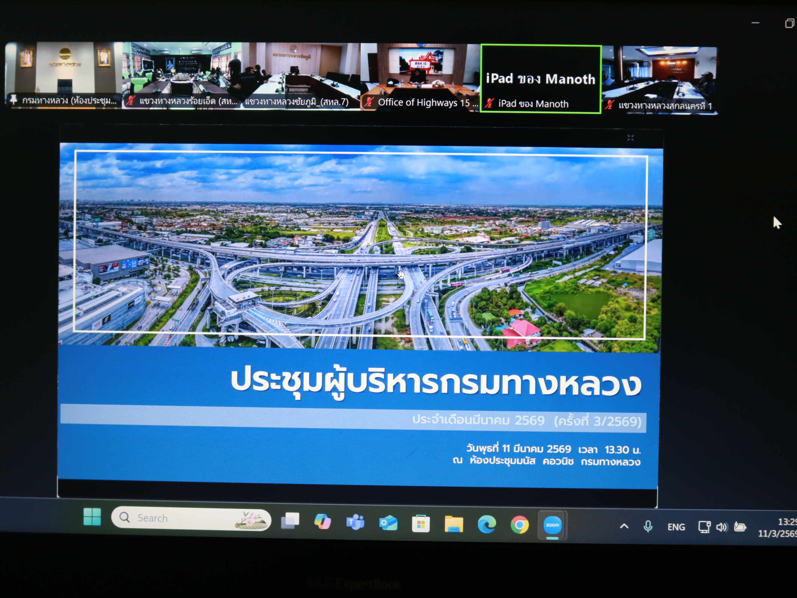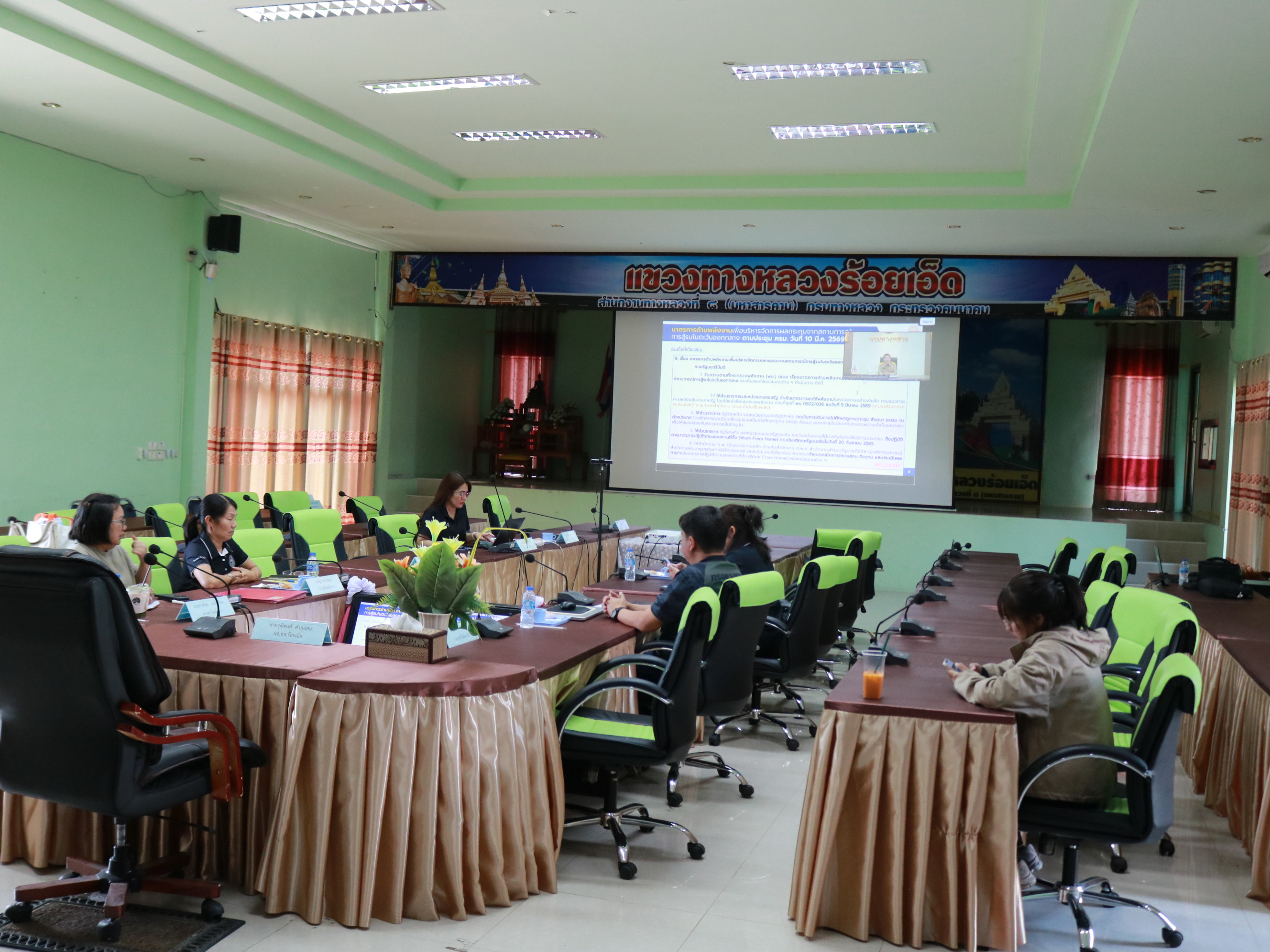 นางสาวศิวพร เหมือนสีเลา รองผู้อำนวยการแขวงทางหลวงร้อยเอ็ด ฝ่ายวิศวกรรม ,นางรฐา ชำนาญยงค์ รองผู้อำนวยการแขวงทางหลวงร้อยเอ็ด ฝ่ายบริหาร พร้อมเจ้าหน้าที่แขวงทางหลวงร้อยเอ็ด ได้เข้าร่วมประชุมผู้บริหารกรมทางหลวง ประจำเดือนมีนาคม 2569 (ครั้งที่ 3/2569) โดยมี นายปิยพงษ์ จิวัฒนกุลไพศาล อธิบดีกรมทางหลวง เป็นประธานในการประชุม ณ ห้องประชุมมนัส คอวนิช กรมทางหลวง ผ่านสื่ออิเล็กทรอนิกส์แอปพลิเคชั่น Zoom Cloud Meeting ณ ห้องประชุมจุลละโพธิ แขวงทางหลวงร้อยเอ็ด
