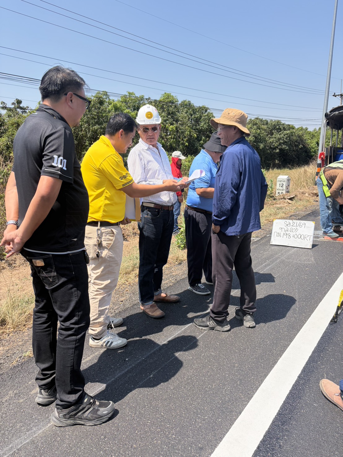ร่วมตรวจรับงานก่อสร้าง ตามสัญญา ที่ รอ.25/2569 งานจ้างก่อสร้างกิจกรรมบำรุงรักษาทางหลวง ปี 2569 งานปรับปรุงผิวทางแอสฟัลต์คอนกรีต นำกลับมาใช้ใหม่ (IN PLACE) งานบำรุงตามกำหนดเวลา ในทางหลวงหมายเลข 202 ตอน เกษตรวิสัย - สุวรรณภูมิ ตอน 1 ระหว่าง กม.195+560 - กม.195+800 ,กม.197+100 - กม.197+965 และกม.198+100 - กม.199+015