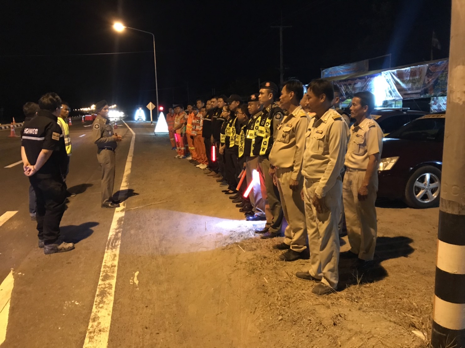 นายพงศกร จุลละโพธิ ผู้อำนวยการแขวงทางหลวงร้อยเอ็ด ร่วมกับ เจ้าหน้าที่ตำรวจ จากสถานีตำรวจทางหลวง 1 กองกำกับการ 4 ,เจ้าหน้าที่ฝ่ายปกครอง อำเภอเกษตรวิสัย , เจ้าหน้าที่สำนักงานขนส่งจังหวัดร้อยเอ็ด และเจ้าหน้าที่กู้ภัยทางหลวง ร่วมตั้งจุดตรวจ จุดสกัดความเร็ว และตรวจวัดระดับแอลกอฮอล์ เพื่อเฝ้าระวังและป้องกันการเกิดอุบัติเหตุ รวมทั้งอำนวยความสะดวกปลอดภัย ให้กับผู้ใช้เส้นทางช่วงเทศกาลสงกรานต์ ปี 2562 ในทางหลวงหมายเลข 202 ตอน ห้วยลำเตา - เกษตรวิสัย ที่ กม.186+475 (บริเวณสามแยกโรงพยาบาลเกษตรวิสัย อ.เกษตรวิสัย จ.ร้อยเอ็ด)