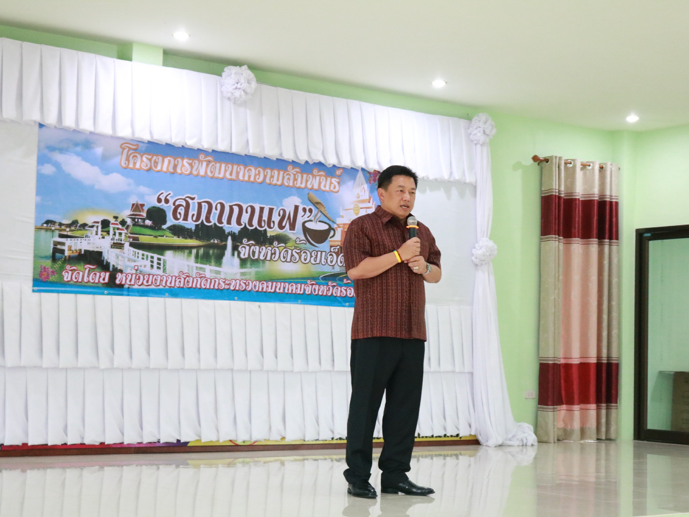 นายพงศกร จุลละโพธิ ผู้อำนวยการแขวงทางหลวงร้อยเอ็ด พร้อมด้วยหน่วยงานในสังกัดกระทรวงคมนาคม ประกอบด้วยแขวงทางหลวงชนบร้อยเอ็ด ,สำนักงานขนส่งจังหวัดร้อยเอ็ด และการท่าอากาศยานร้อยเอ็ด ร่วมเป็นเจ้าภาพจัดกิจกรรมการพัฒนาความสัมพันธ์ “สภากาแฟ” จังหวัดร้อยเอ็ด ครั้งที่ 11/2562 เพื่อแลกเปลี่ยนความคิดเห็นและสร้างความสามัคคีระหว่างส่วนราชการหน่วยงานต่างๆในจังหวัดร้อยเอ็ด โดยมีนายวันชัย คงเกษม ผู้ว่าราชการจังหวัดร้อยเอ็ดเป็นประธาน ณ ห้องประชุมแขวงทางหลวงร้อยเอ็ด อำเภอธวัชบุรี จังหวัดร้อยเอ็ด