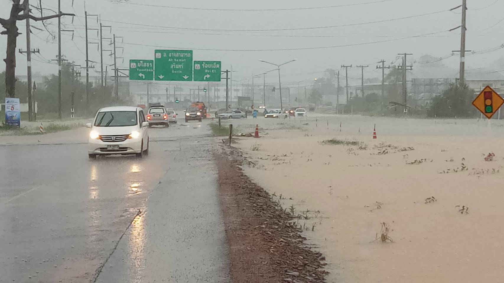นายพงศกร จุลละโพธิ ผู้อำนวยการแขวงทางหลวงร้อยเอ็ด ลงพื้นที่ตรวจสอบสถานการณ์น้ำท่วมสายทาง เนื่องจากฝนตกหนักอย่างต่อเนื่อง ในทางหลวงหมายเลข 232 ตอน ถนนวงแหวนรอบเมืองร้อยเอ็ด ที่ กม.15+681 (บริเวณแยกธวัชบุรี) ทั้งนี้หมวดทางหลวงในพื้นที่ได้ดำเนินการติดตั้งป้ายเตือน และอุปกรณ์อำนวยความสะดวกพร้อมทั้งจัดเจ้าหน้าที่เฝ้าระวังสถานการณ์น้ำท่วมอย่างใกล้ชิด เพื่ออำนวยความสะดวก ปลอดภัย ให้กับผู้ใช้เส้นทาง