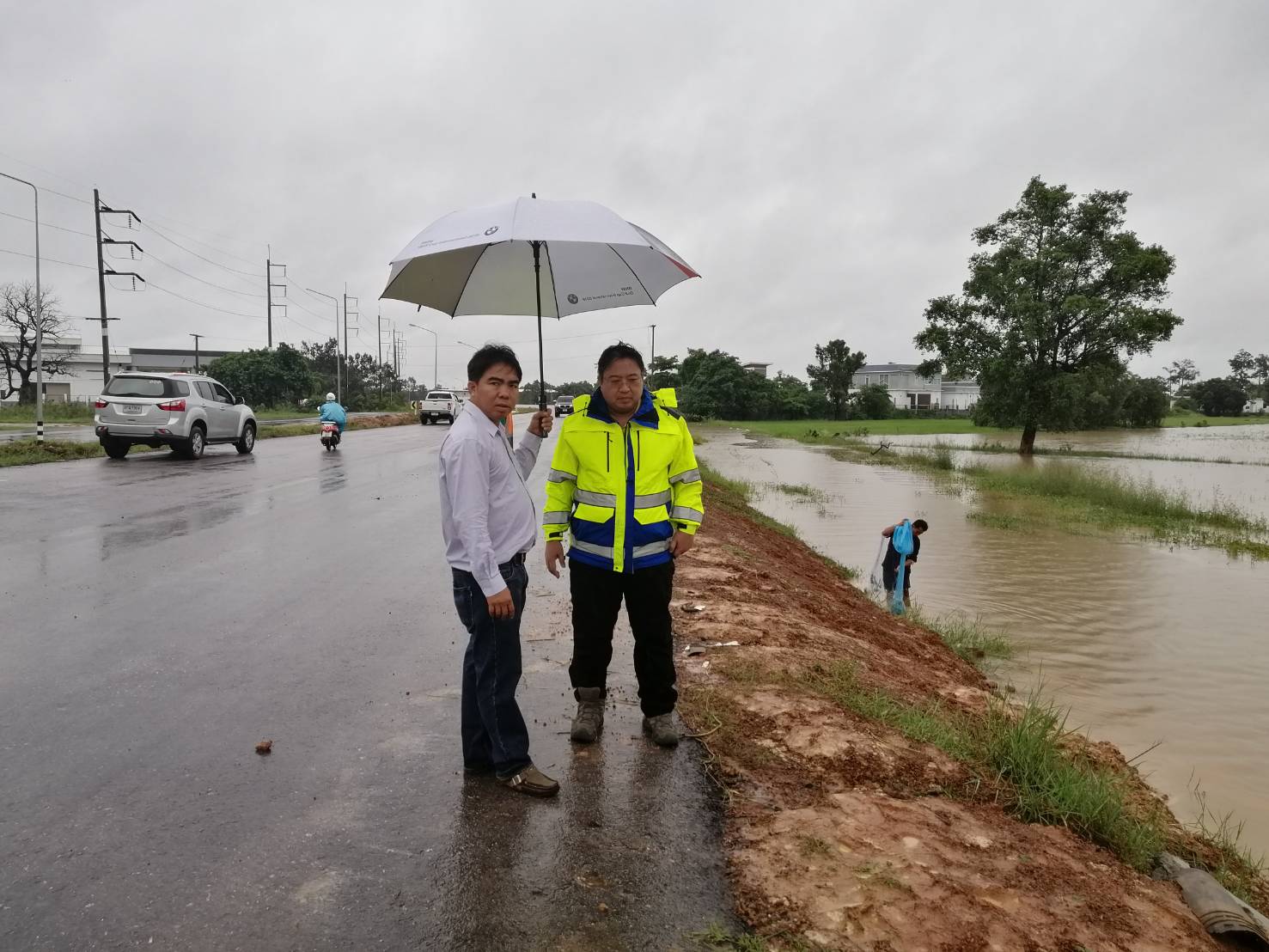 ทั้งนี้ทางโครงการฯ กับผู้รับจ้างได้ดำเนินการติดตั้งป้ายเตือน พร้อมทั้งจัดเจ้าหน้าที่เฝ้าระวังสถานการณ์น้ำท่วมอย่างใกล้ชิด และได้เบี่ยงเส้นทางการจราจร เพื่อให้รถวิ่งบนคันทางใหม่ที่กำลังก่อสร้าง เพื่ออำนวยความสะดวก ปลอดภัย ให้กับผู้ใช้เส้นทาง