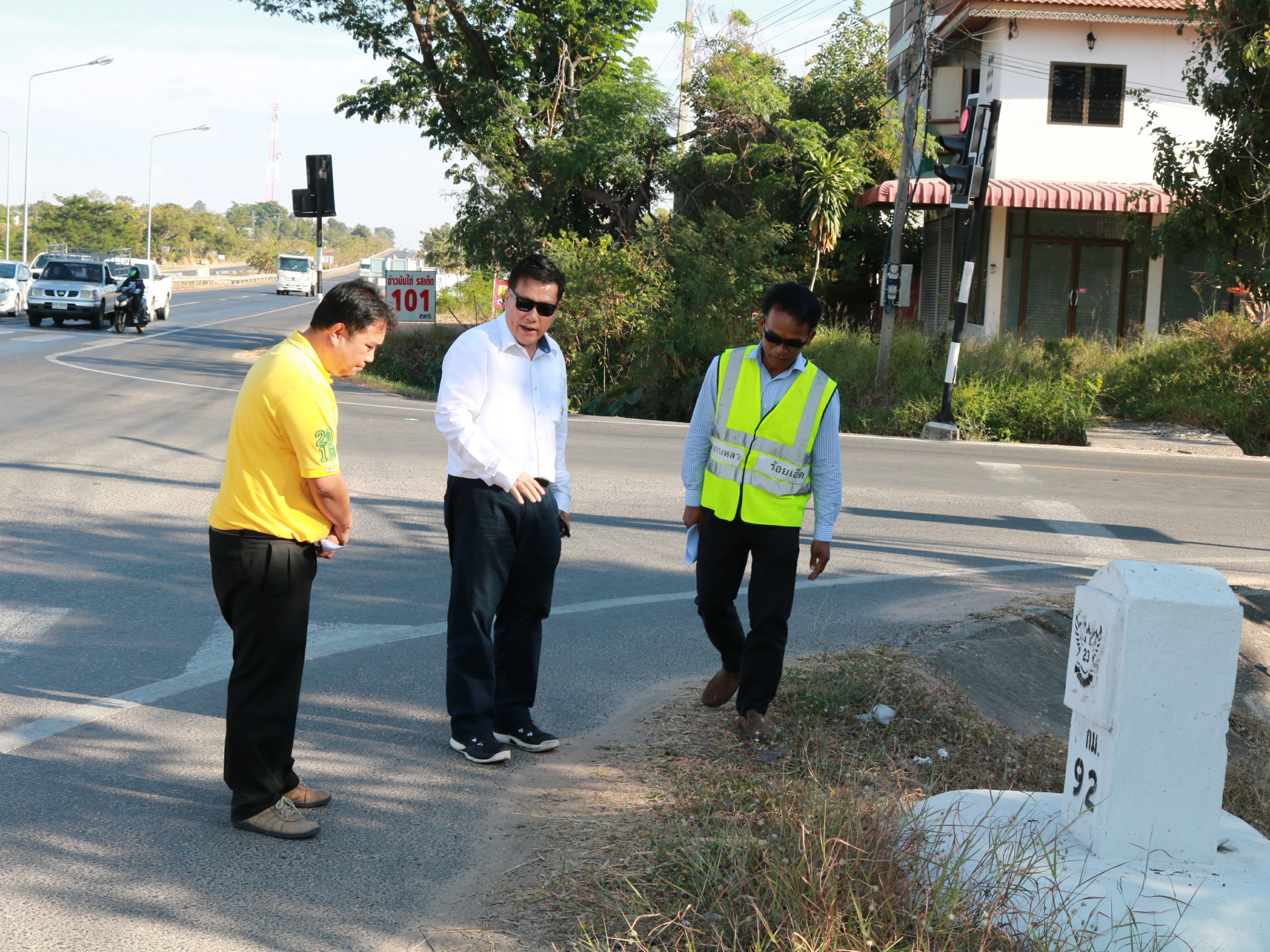 นายบัญชา สุทัยบำรุง ผู้อำนวยการสำนักงานทางหลวงที่ 8 (มหาสารคาม) พร้อมด้วย นายสถิต คำพิชิต รองผู้อำนวยการแขวงทางหลวงร้อยเอ็ด ฝ่ายปฏิบัติการ และนายณัฐพล เยี่ยมชัยภูมิ หัวหน้าหมวดทางหลวงร้อยเอ็ด ลงพื้นที่ตรวจสอบจุดที่เกิดอุบัติเหตุ จุดเสี่ยง ในทางหลวงหมายเลข 23 ตอน ห้วยแอ่ง - ร้อยเอ็ด ที่ กม.103+000 และ ที กม.92+000 พร้อมให้แนวทางการแก้ไขเพื่อป้องกันการเกิดอุบัติเหตุครั้งต่อไป