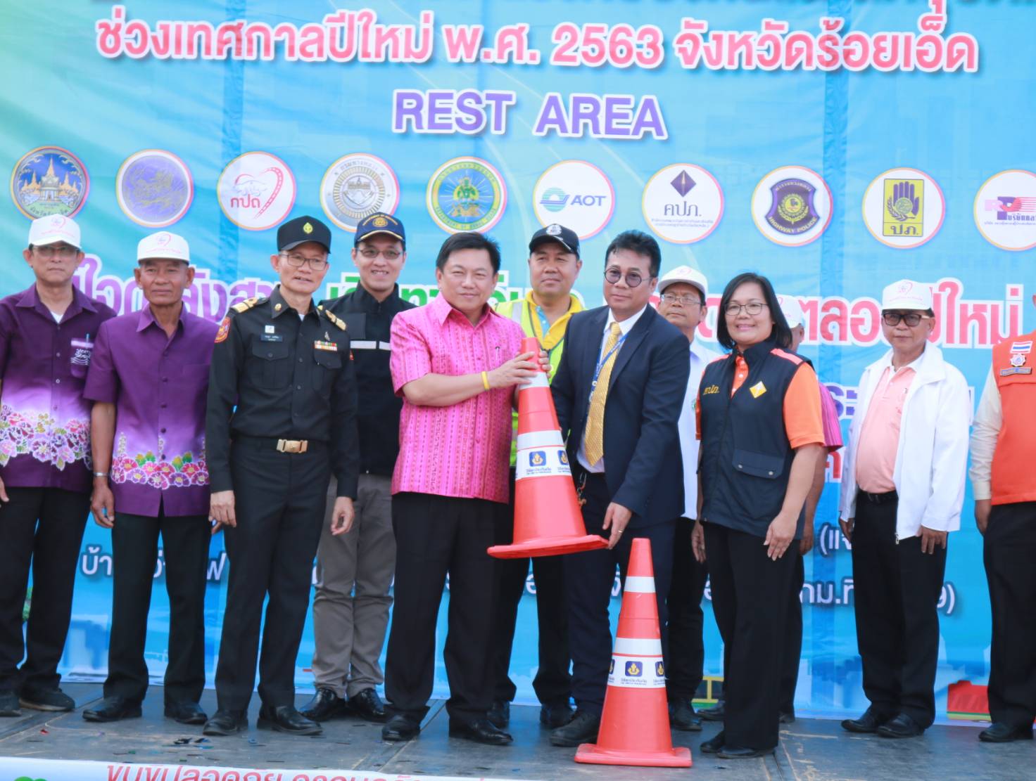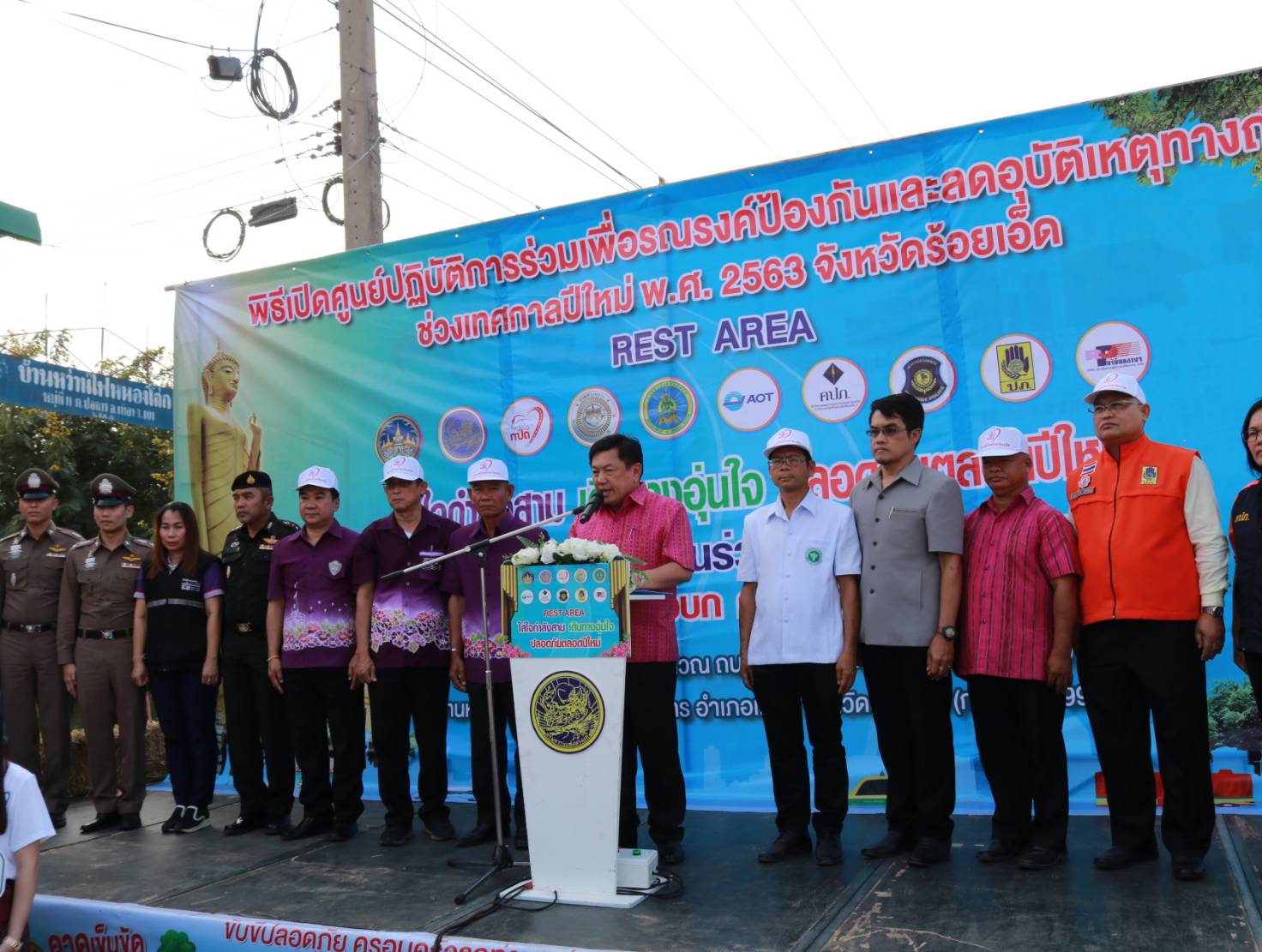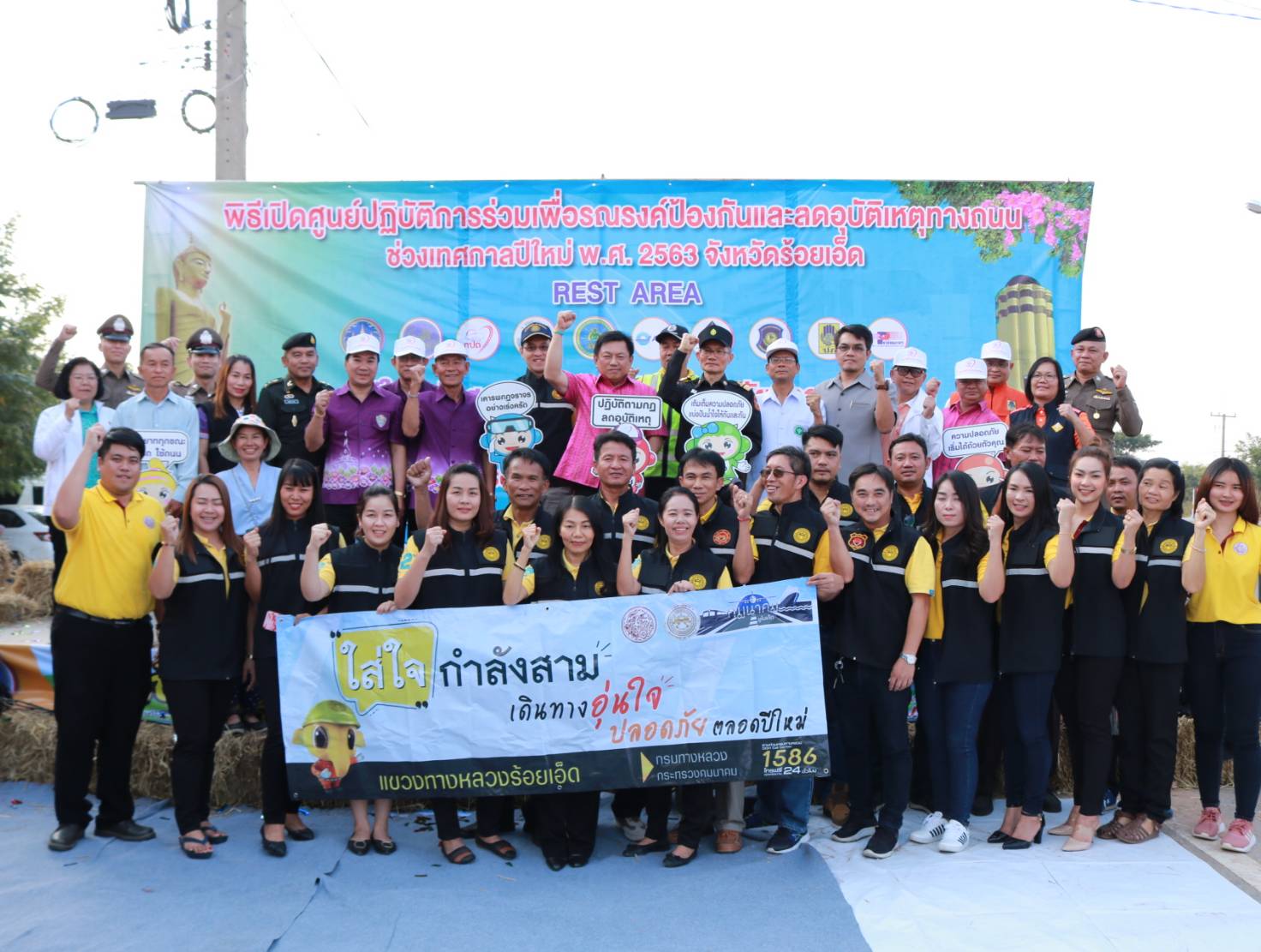นายเกียรติพงษ์ เจียรนัยธนะกิจ ผู้อำนวยการแขวงทางหลวงร้อยเอ็ด ,คณะเจ้าหน้าที่แขวงทางหลวงร้อยเอ็ด พร้อมด้วยคณะเจ้าหน้าที่จากสำนักงานขนส่งจังหวัดร้อยเอ็ด , แขวงทางหลวงชนบทจังหวัดร้อยเอ็ด , ท่าอากาศยานร้อยเอ็ด , สำนักงานคณะกรรมการกำกับและส่งเสริมการประกอบธุรกิจประกันภัย (คปภ.) และ เจ้าหน้าที่ตำรวจทางหลวง 1 กองกำกับการ 4 ร่วมพิธี “เปิดศูนย์ปฏิบัติการร่วมรณรงค์ป้องกันอุบัติเหตุทางถนน (Rest Area) ช่วงเทศกาลปีใหม่ พ.ศ. 2563” โดยมีนายวันชัย คงเกษม ผู้ว่าราชการจังหวัดร้อยเอ็ด เป็นประธานในพิธีเปิดศูนย์ฯ ณ บริเวณถนนทางหลวงหมายเลข 23 ตอน ห้วยแอ่ง - ร้อยเอ็ด ที่ กม.98+000 บ้านหว่านไฟ ตำบลปอภาร อำเภอเมืองร้อยเอ็ด จังหวัดร้อยเอ็ด เพื่ออำนวยความสะดวก ปลอดภัยและให้บริการกับประชาชน ผู้ใช้เส้นทางในช่วงเทศกาลปีใหม่ 2563 ระหว่างวันที่ 27 ธ.ค. 63 – 2 ม.ค. 63