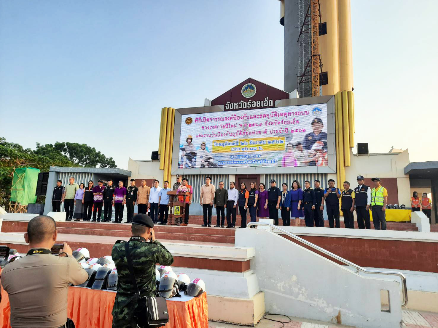 นายเกียรติพงษ์ เจียรนัยธนะกิจ ผู้อำนวยการแขวงทางหลวงร้อยเอ็ด มอบหมายให้นายณัฐพล เยี่ยมชัยภูมิ หัวหน้าหมวดทางหลวงร้อยเอ็ด เข้าร่วม”พิธีเปิดการรณรงค์ป้องกันและลดอุบัติเหตุทางถนนช่วงเทศกาลปีใหม่ พ.ศ. 2563 จังหวัดร้อยเอ็ด และงานวันป้องกันอุบัติเหตุแห่งชาติ ประจำปี 2562” โดยมีนายวันชัย คงเกษม ผู้ว่าราชการ จังหวัดร้อยเอ็ด เป็นประธานในพิธีฯ ณ บริเวณลานสาเกตนคร สวนสมเด็จพระศรีนครินทร์ร้อยเอ็ด อำเภอเมืองร้อยเอ็ด จังหวัดร้อยเอ็ด