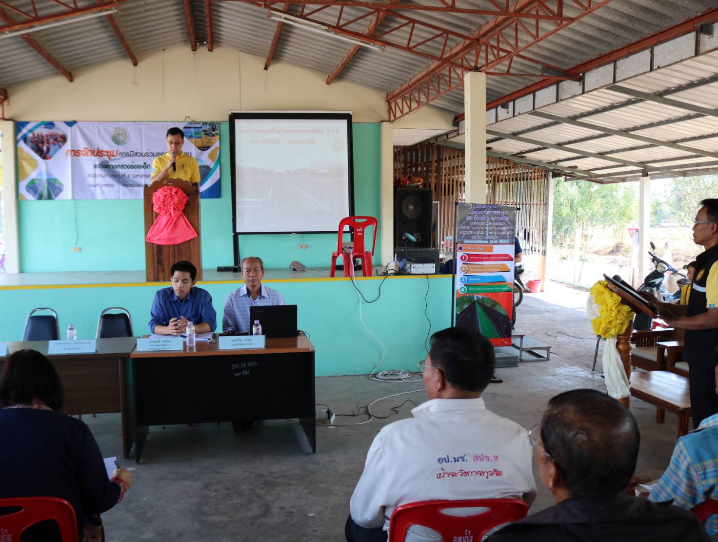 นายเกียรติพงษ์ เจียรนัยธนะกิจ ผู้อำนวยการแขวงทางหลวงร้อยเอ็ด เป็นประธานในพิธี การประชุมการมีส่วนร่วมของประชาชน แผนงานบูรณาการพัฒนาด้านคมนาคมและระบบโลจิสติกส์ โครงการก่อสร้างโครงข่ายทางหลวงแผ่นดิน และขยายช่องจราจร จาก 2 ช่องจราจร เป็น 4 ช่องจราจร ในทางหลวงหมายเลข 214 สาย ร้อยเอ็ด – เกษตรวิสัย ระหว่าง กม.51+953 – กม.53+760 ,กม.54+280 - กม.56+203 ,กม.56+703 - กม.59+503 ,กม.60+601 - กม.69+900 ,กม.73+275 – กม.79+200 ,กม.88+200 - กม.91+903 ระยะทาง ประมาณ 25.457 กิโลเมตร โดยมีคณะวิทยากร จากแขวงทางหลวงร้อยเอ็ด , วิทยากรจากสำนักสำรวจและออกแบบ กรมทางหลวง ร่วมแนะนำ และชี้แจงรายละเอียดโครงการก่อสร้างฯ ณ ห้องประชุมองค์การบริหารส่วนตำบลน้ำใส และห้องประชุมองค์การบริหารส่วนตำบลศรีโคตร อำเภอจตุรพักตรพิมาน จังหวัดร้อยเอ็ด