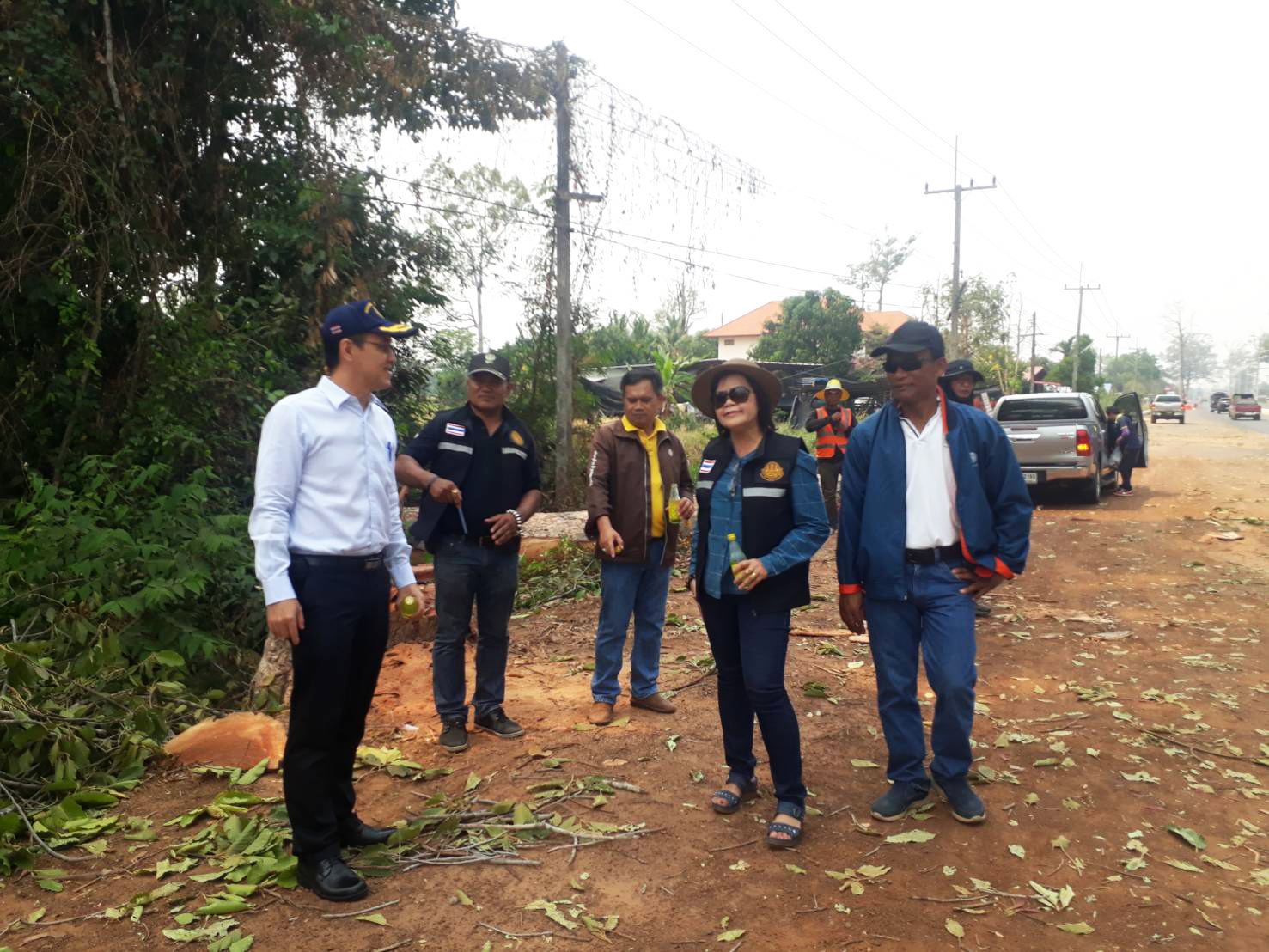 นายเกียรติพงษ์ เจียรนัยธนะกิจ ผู้อำนวยการแขวงทางหลวงร้อยเอ็ด พร้อมด้วยนายสมัย คะนะมะ รองผู้อำนวยการแขวงทางหลวงร้อยเอ็ด ฝ่ายวิศวกรรม ,นายสถิต คำพิชิต รองผู้อำนวยการแขวงทางหลวงร้อยเอ็ด ฝ่ายปฏิบัติการ ร่วมตรวจงานตัดต้นไม้ที่กีดขวางงานก่อสร้าง โครงการเพิ่มประสิทธิภาพทางหลวง ในทางหลวงหมายเลข 215 ตอน ร้อยเอ็ด - สุวรณภูมิ ระหว่าง กม.2+300 - กม.4+800