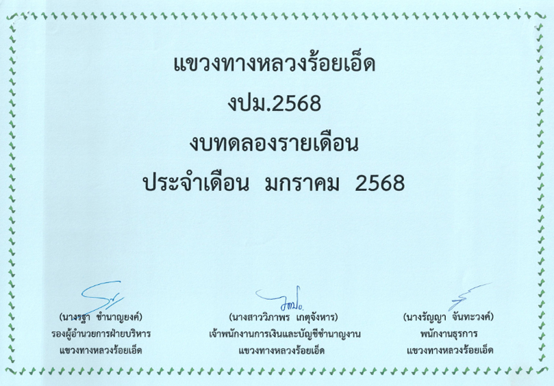 เนื้อหาเพจ : งบทดลอง เดือนมกราคม