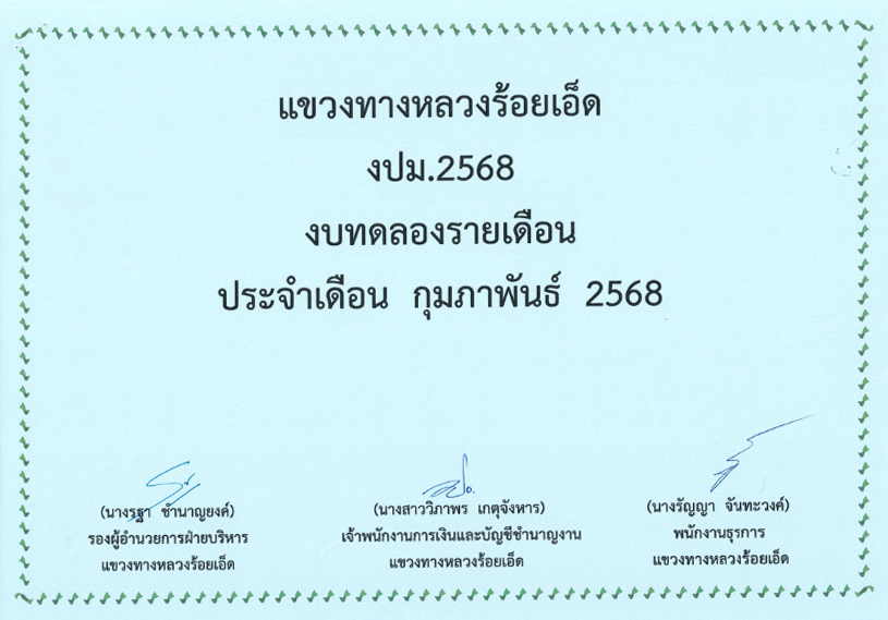 งบทดลอง เดือนกุมภาพันธ์ ปี 2568