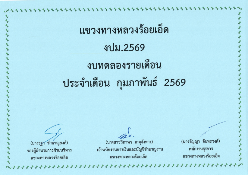งบทดลอง เดือนกุมภาพันธ์ ปี 2569