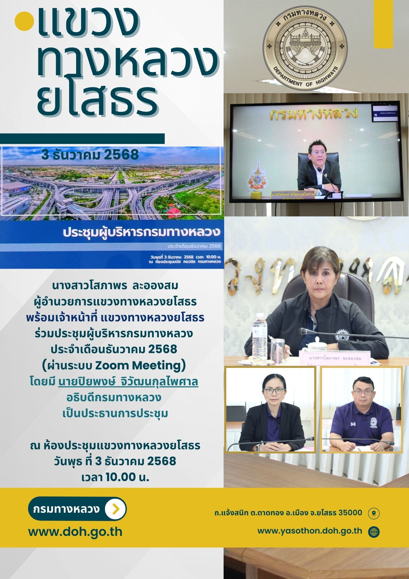 ร่วมประชุมผู้บริหารกรมทางหลวง ประจำเดือนธันวาคม 2568 (ผ่านระบบ Zoom Meeting)