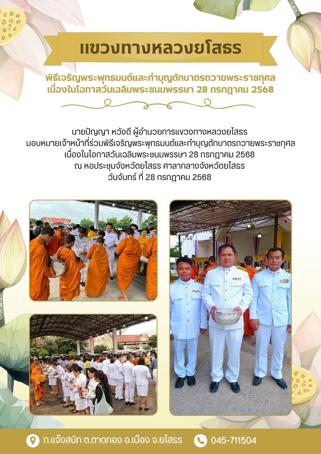 ร่วมพิธีเจริญพระพุทรมนต์ และทำบุญตักบาตรถวายพระระราชกุศล เนื่องในโอกาสวันเฉลิมพระชนมพรรษา 28 กรกฎาคม 2568