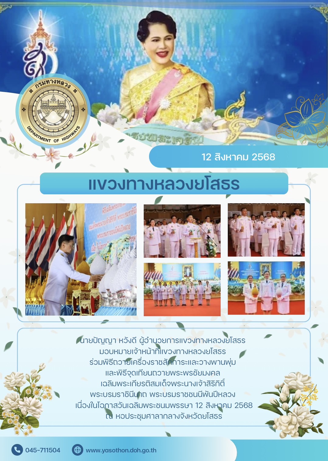 ร่วมพิธีถวายเครื่องราชสักการะและวางพานพุ่ม และพิธีจุดเทียนถวายพระพรชัยมงคล เนื่องในโอกาสเฉลิมพระชนมพรรษา 28 กรกฎาคม 2568