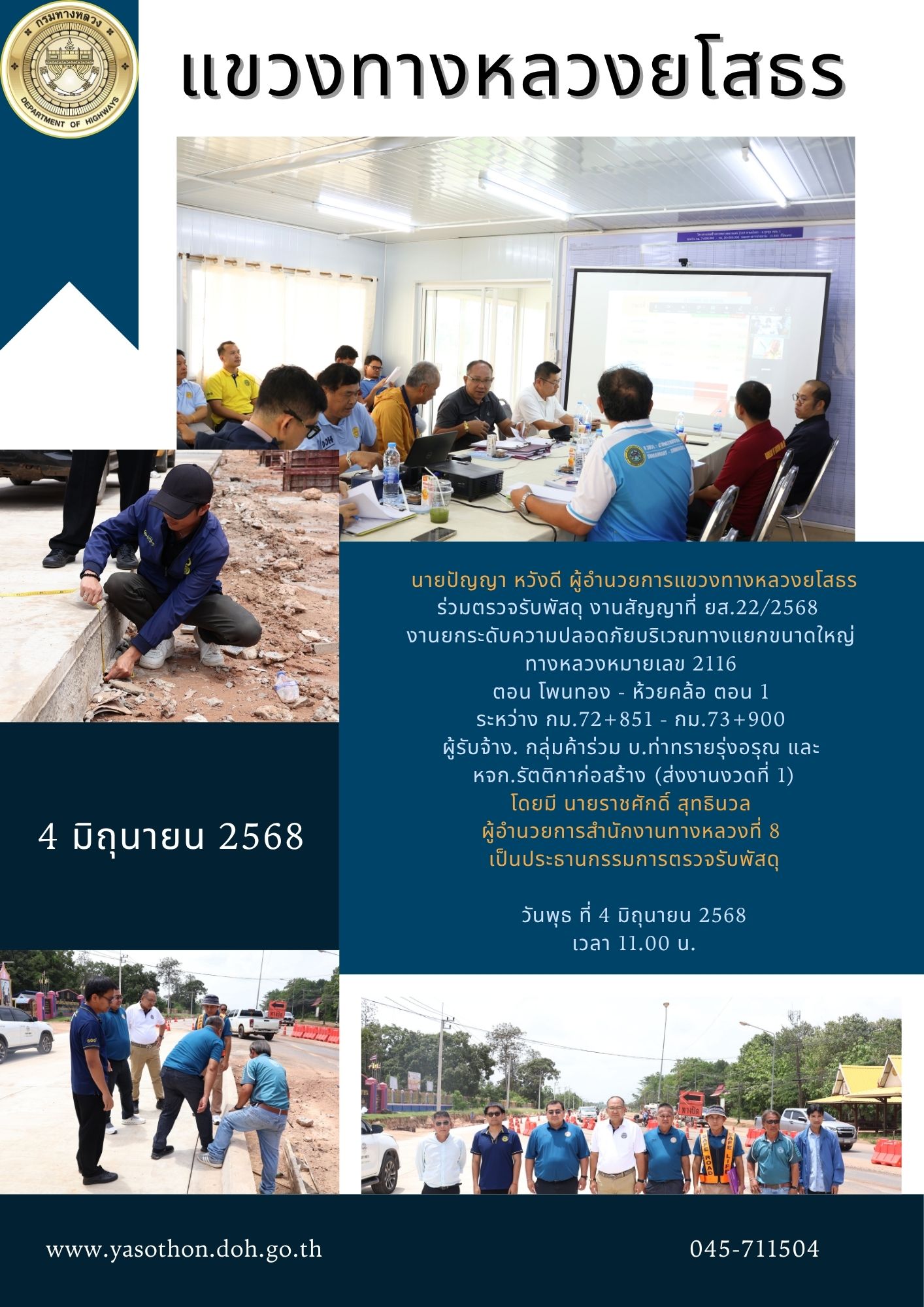 ร่วมตรวจรับพัสดุ งานสัญญาที่ ยส.22/2568 งานยกระดับความปลอดภัยบริเวณทางแยกขนาดใหญ่