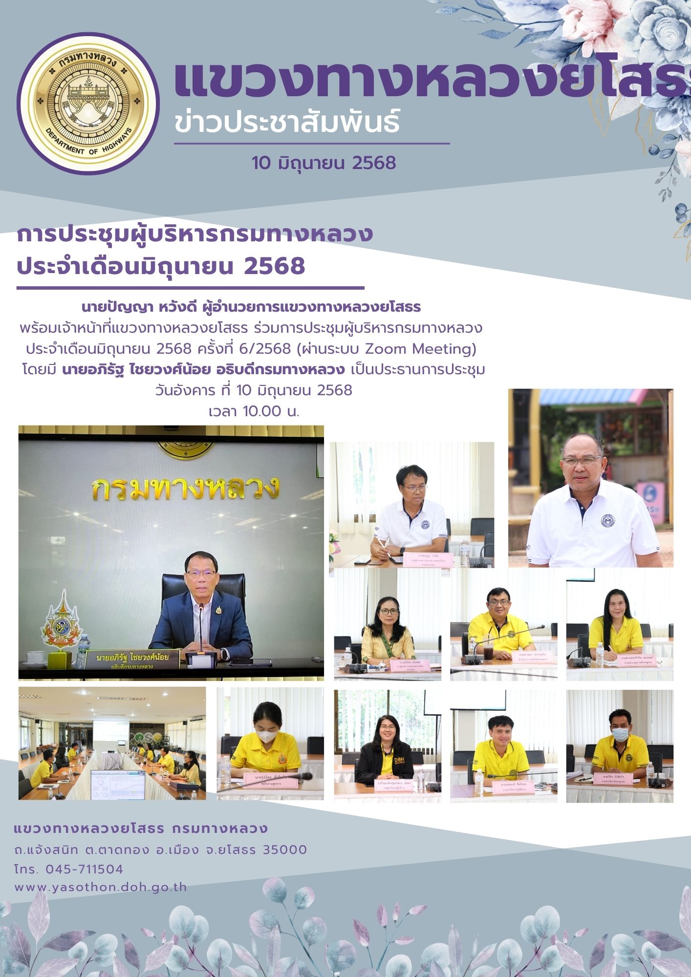 ประชุมผู้บริหารกรมทางหลวง ประจำเดือนมิถุนายน 2568 ครั้งที่ 6/2568