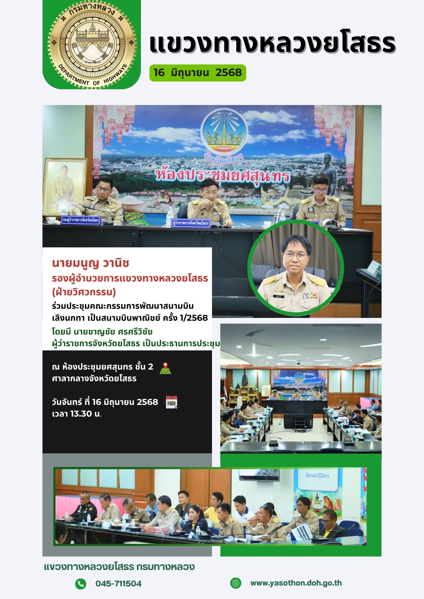 ร่วมประชุมคณะกรรมการพัฒนาสนามบินเลิงนกทา เป็นสนามบินพาณิชย์ ครั้งที่ 1/2568