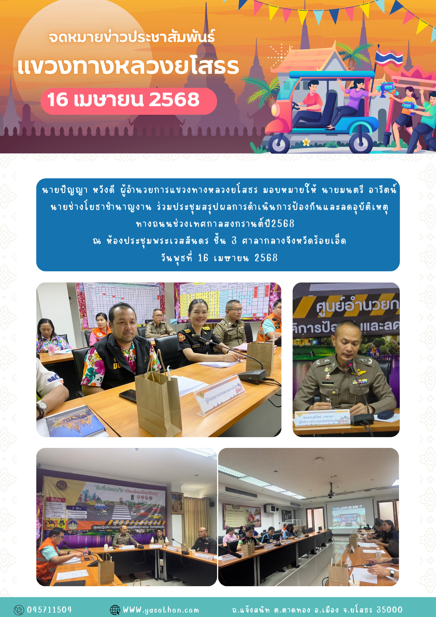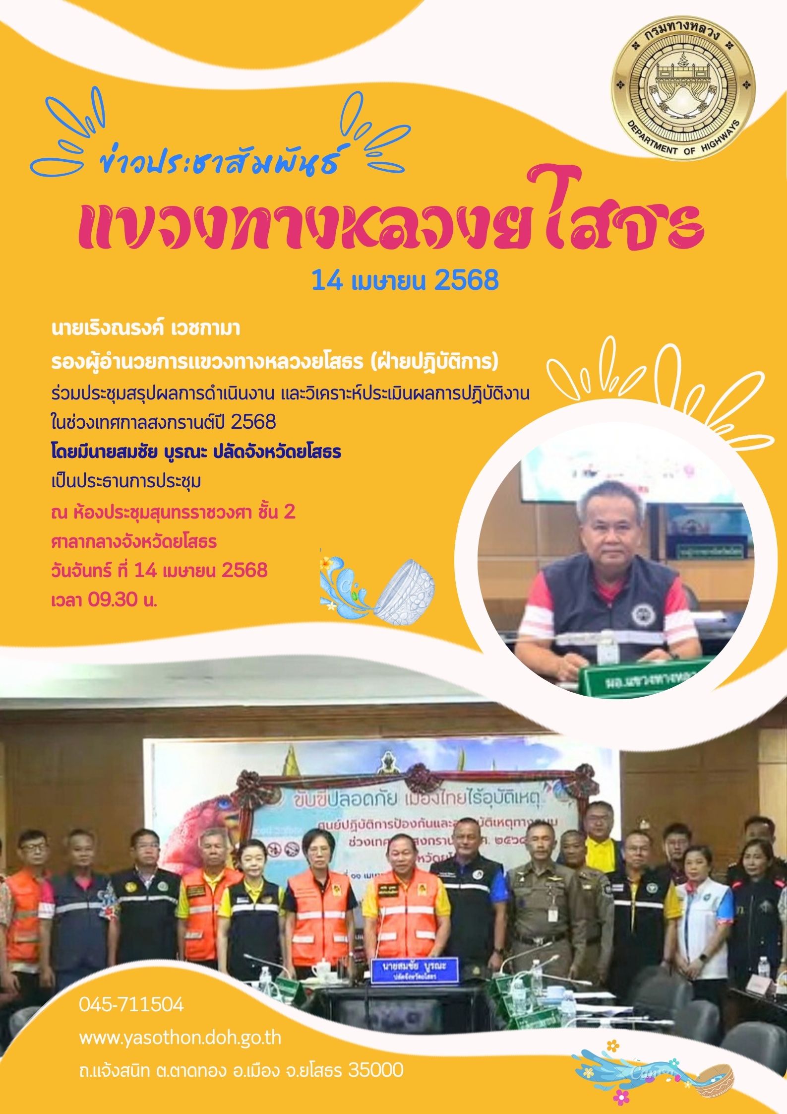 ประชุมสรุปผลการดำเนินงาน และวิเคราะห์ประเมินผลการปฏิบัติงาน ในช่วงเทศกาลสงกรานต์ปี 2568 จังหวัดยโสธร
