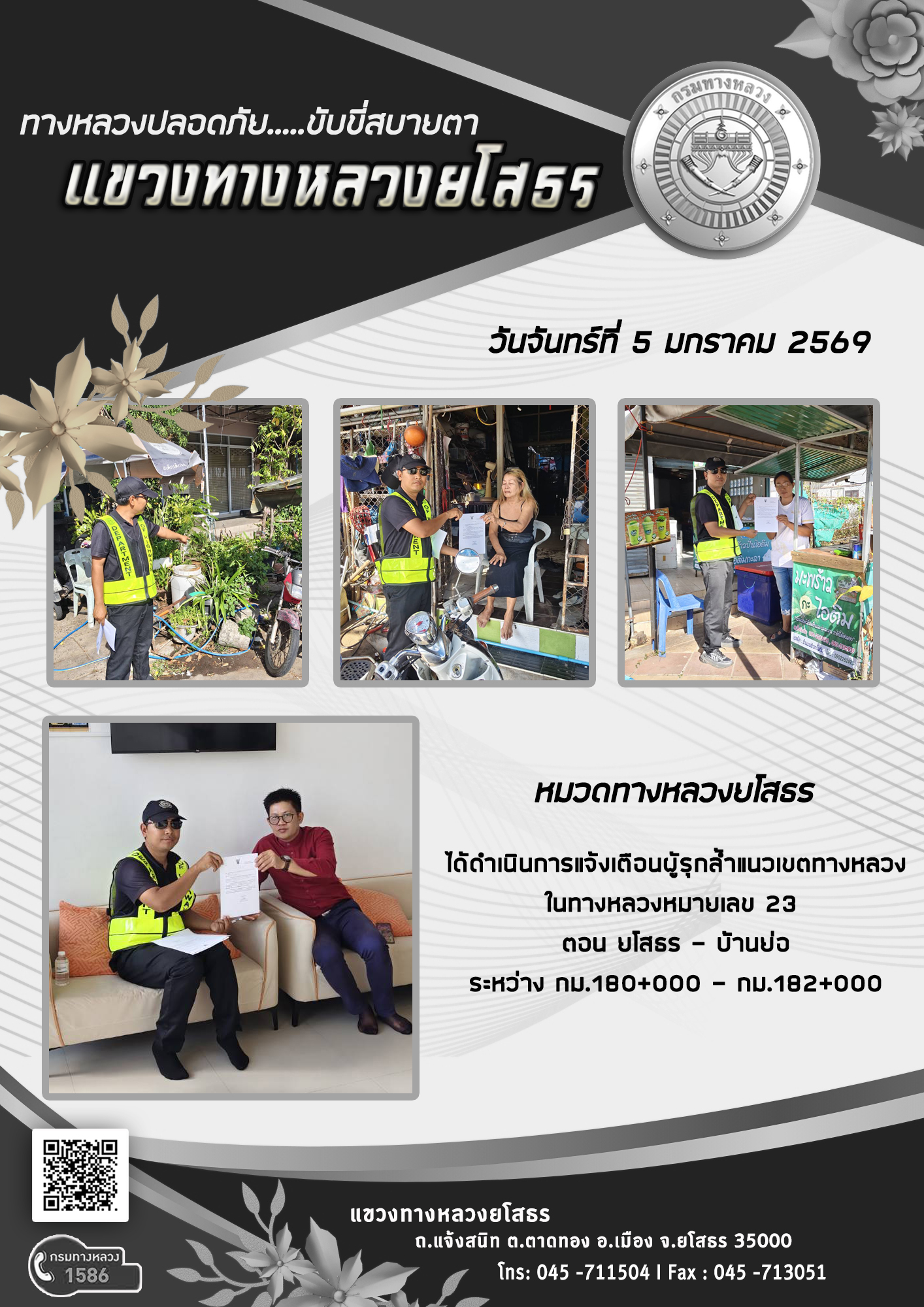 ข้อมูลภาพกิจกรรม : ทางหลวงปลอดภัย ขับขี่สบายตา วันที่ 5 มกราคม 2569