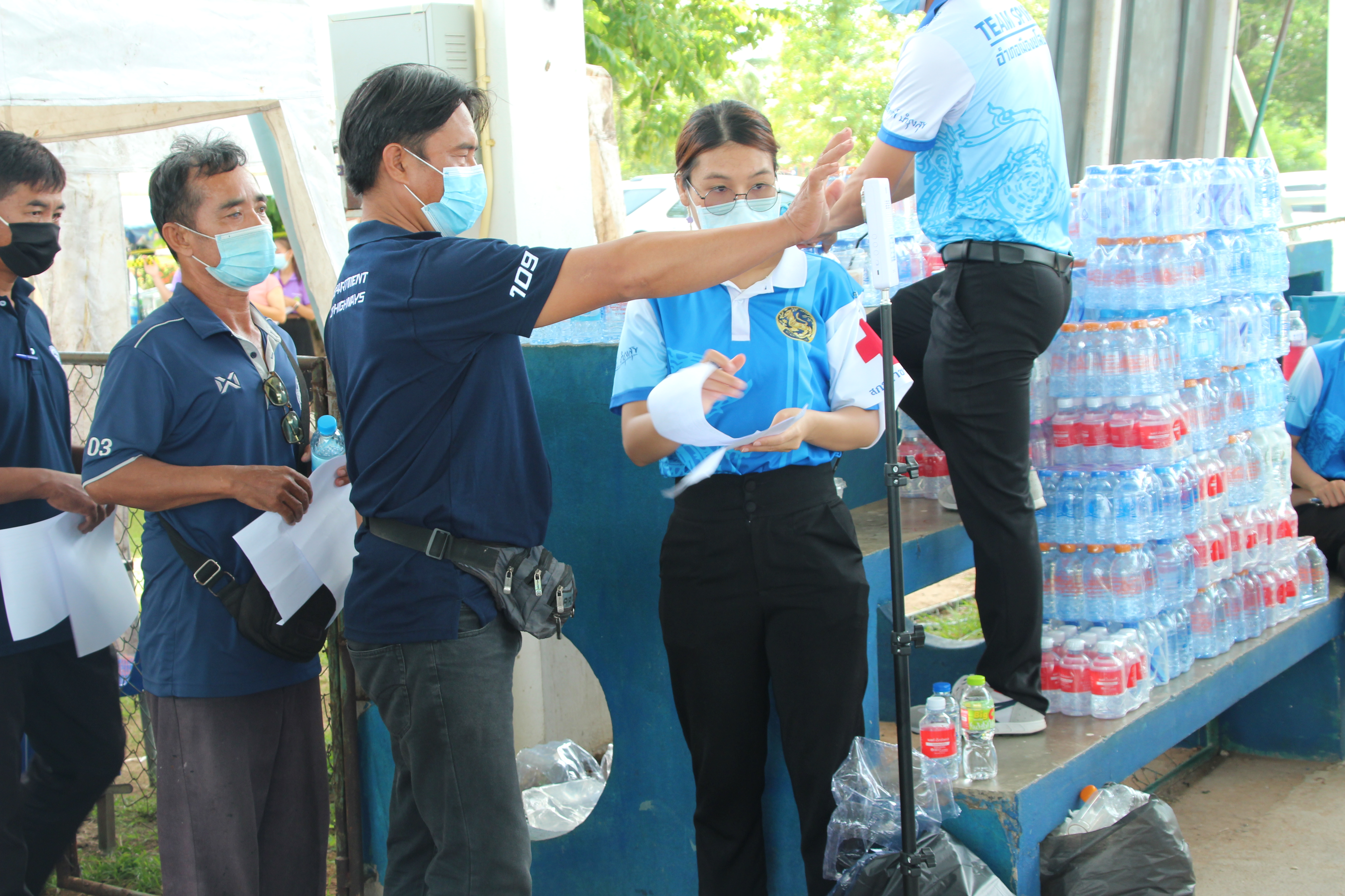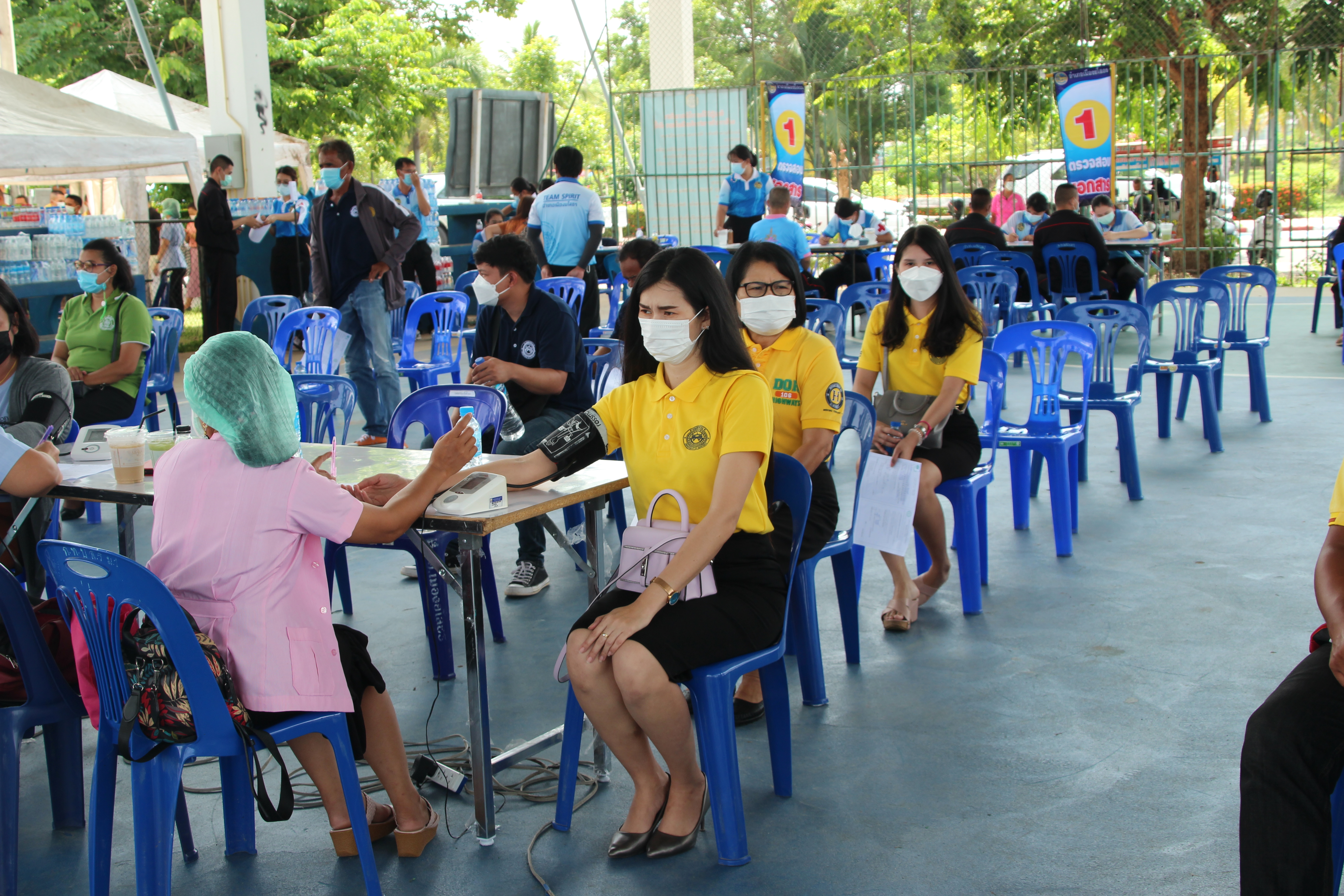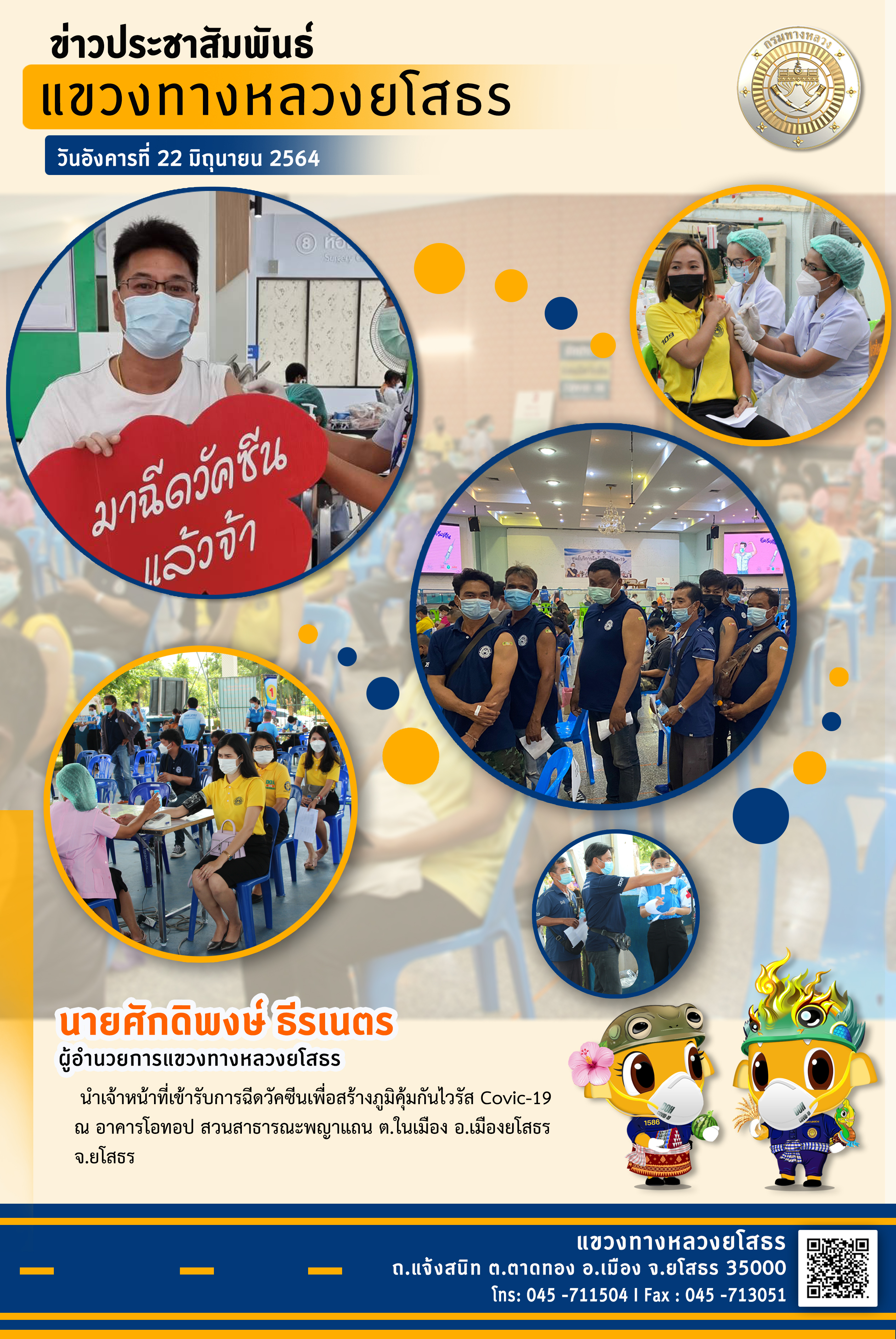 นำเจ้าหน้าที่เข้ารับการฉีดวัคซีนเพื่อสร้างภูมิคุ้มกันไวรัส Covid 19ณ อาคารโอทอป สวนสาธารณพญาแถน ต.ในเมือง อ.เมืองยโสธร จ.ยโสธร