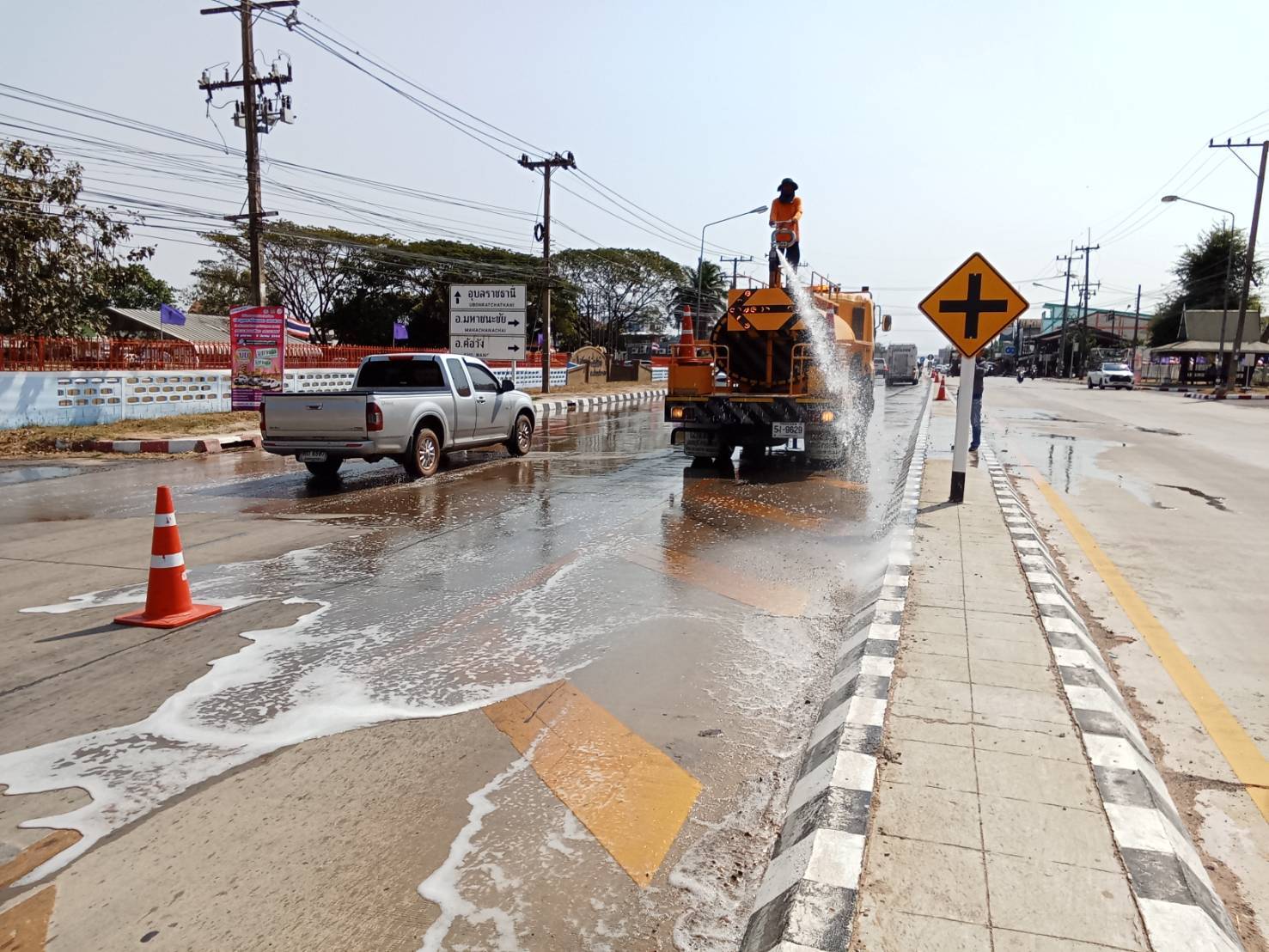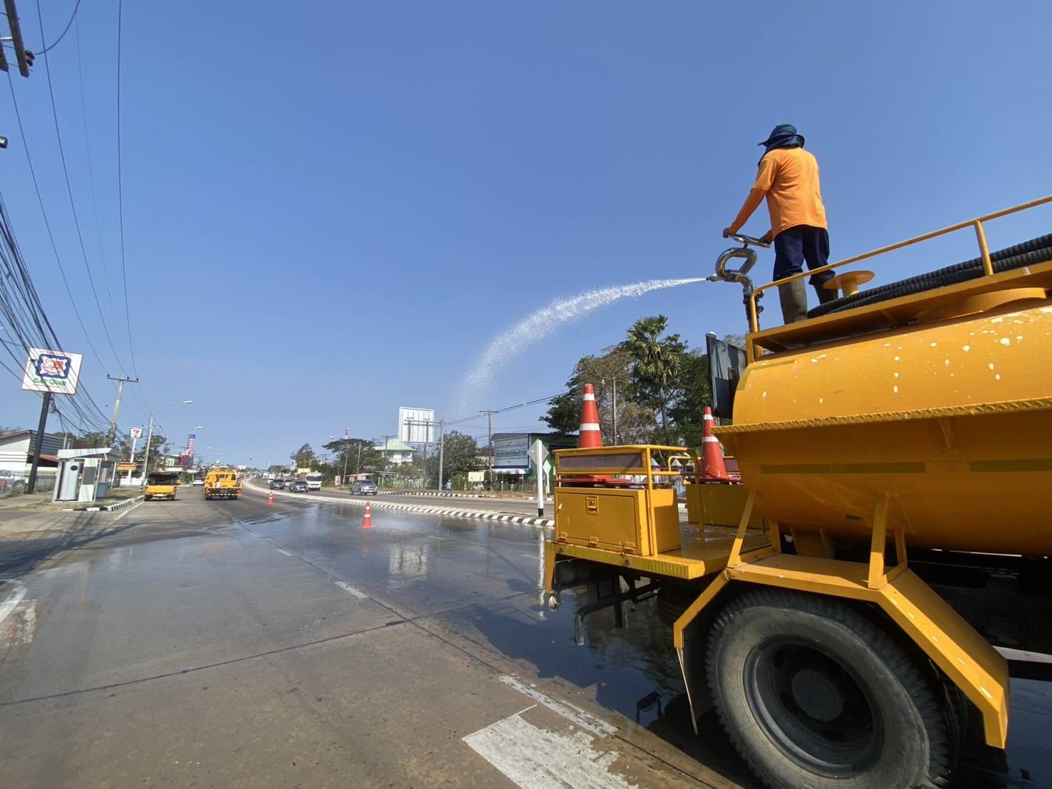 - ฉีดล้างทำความสะอาดพื้นถนน