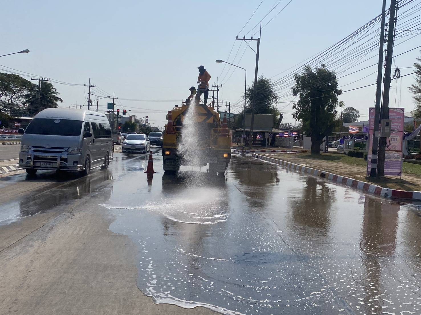 มอบหมายให้หมวดทางหลวงในสังกัด ทำความสะอาด ผิวจราจร ฉีดล้างทำความสะอาดพื้นถนน และเกาะกลางถนน ตามมาตรการลดปัญหาฝุ่นละออง PM 2.5 ในทางหลวงหมายเลข 23 ตอน บ้านย่อ - บ้านสวน ระหว่าง กม.201+000 - กม.201+800 และ ทางหลวงหมายเลข 2043 ตอน ยางเฌอ - มหาชนะชัย ระหว่าง กม.42+150 - กม.42+280 เพื่อความสะอาดเรียบร้อย และลดภาวะฝุ่นละออง PM 2.5