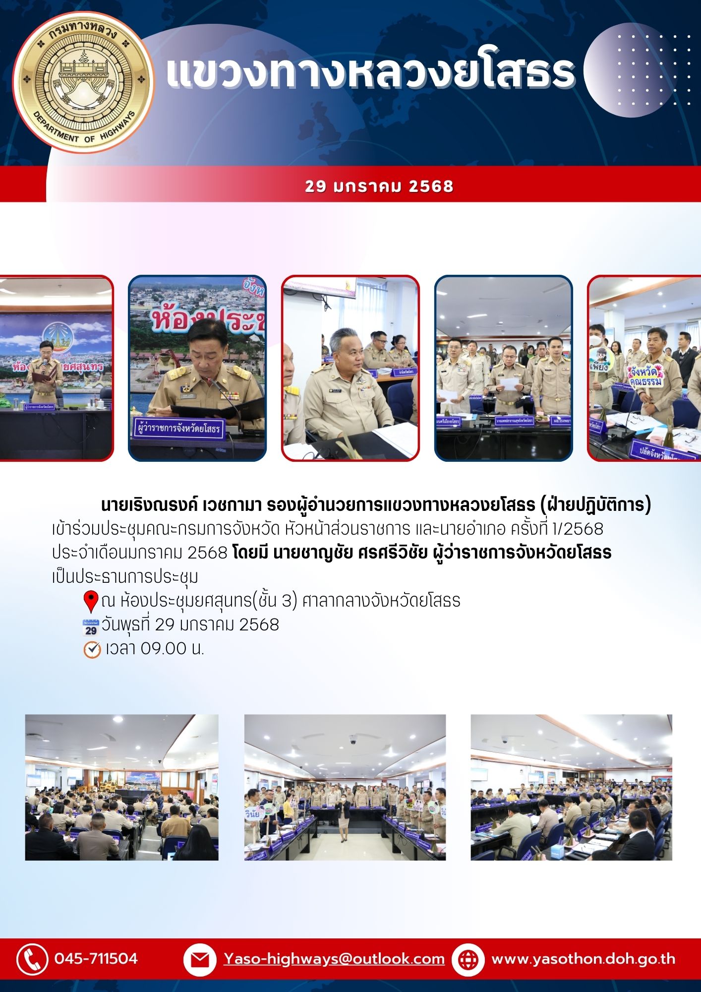 เข้าร่วมประชุมคณะกรมการจังหวัด หัวหน้าส่วนราชการ และนายอำเภอ ครั้งที่ 1/2568 ประจำเดือนมกราคม 2568